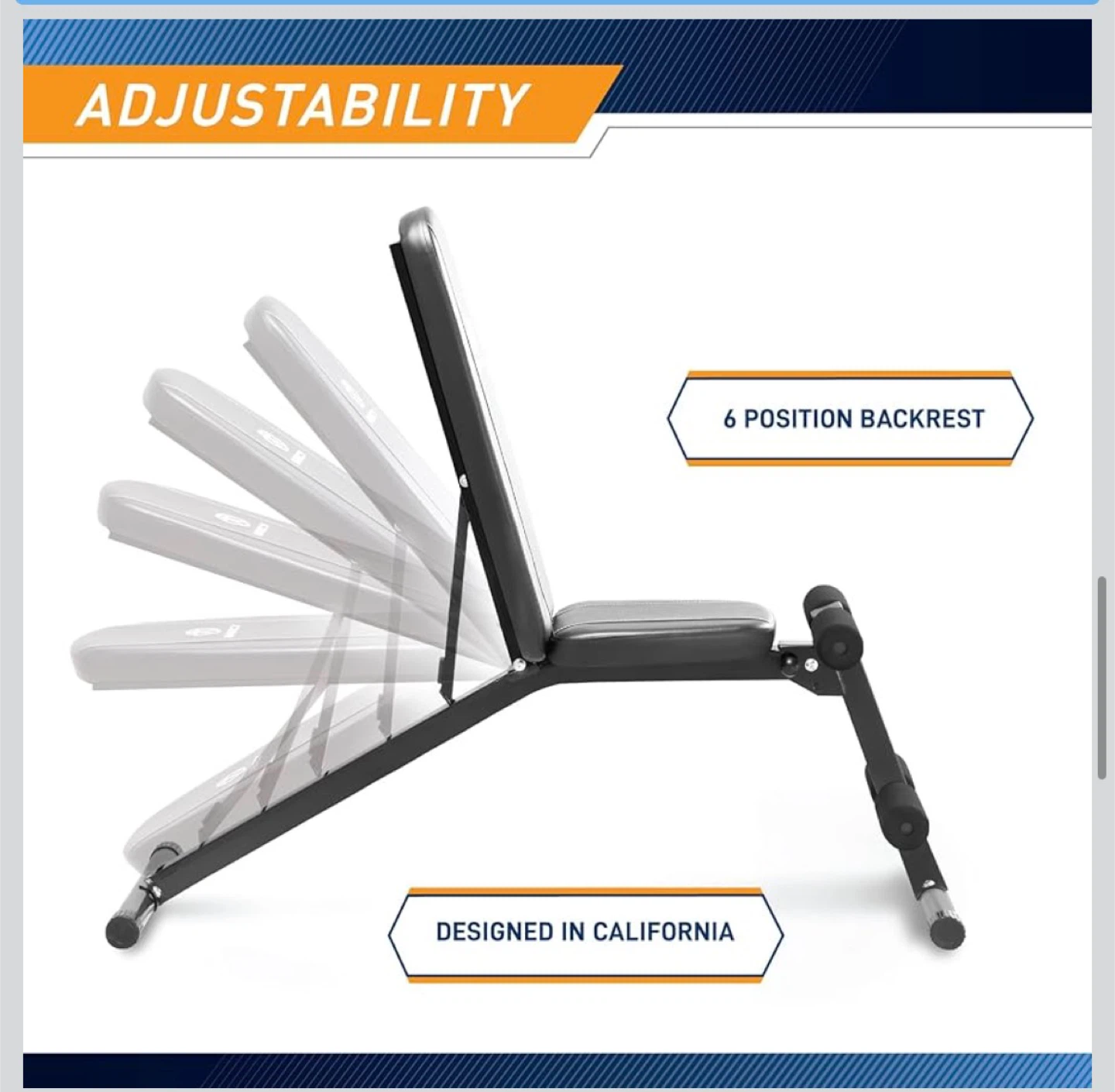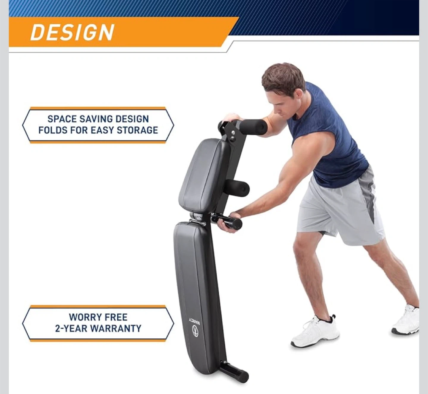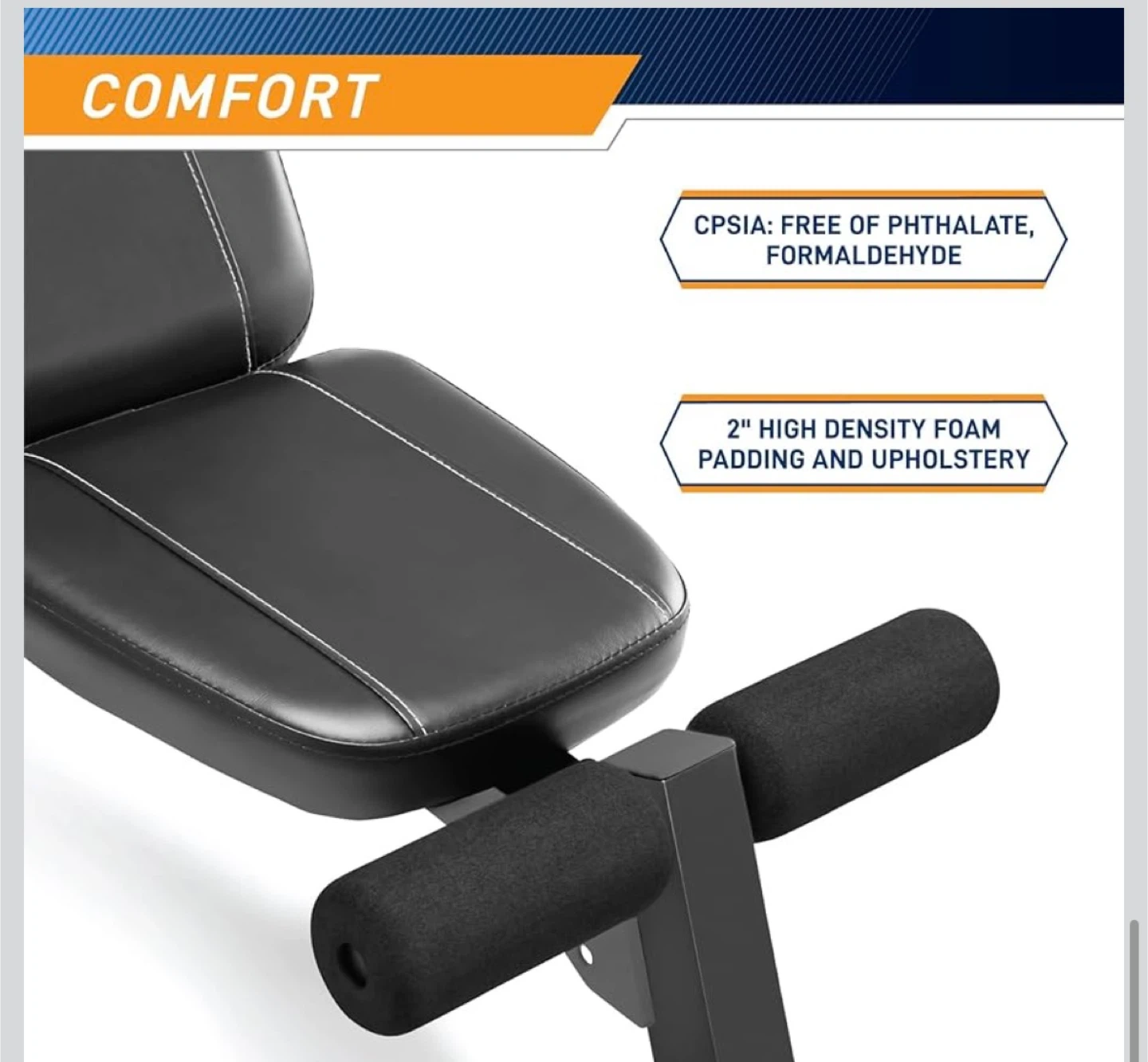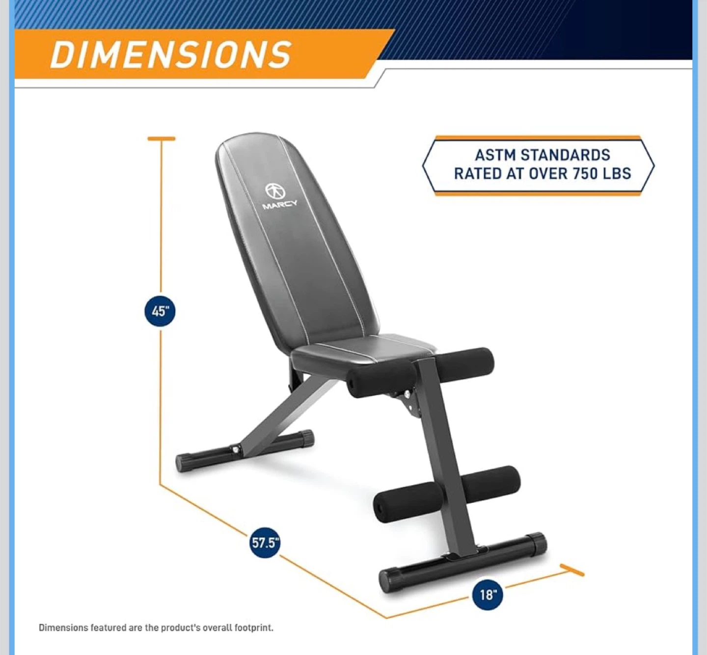 This Marcy weight bench offers a space-saving design that folds for easy storage. It features a 6-position adjustable backrest and 2-inch high-density foam padding. Rated at over 750 lbs according to ASTM standards.