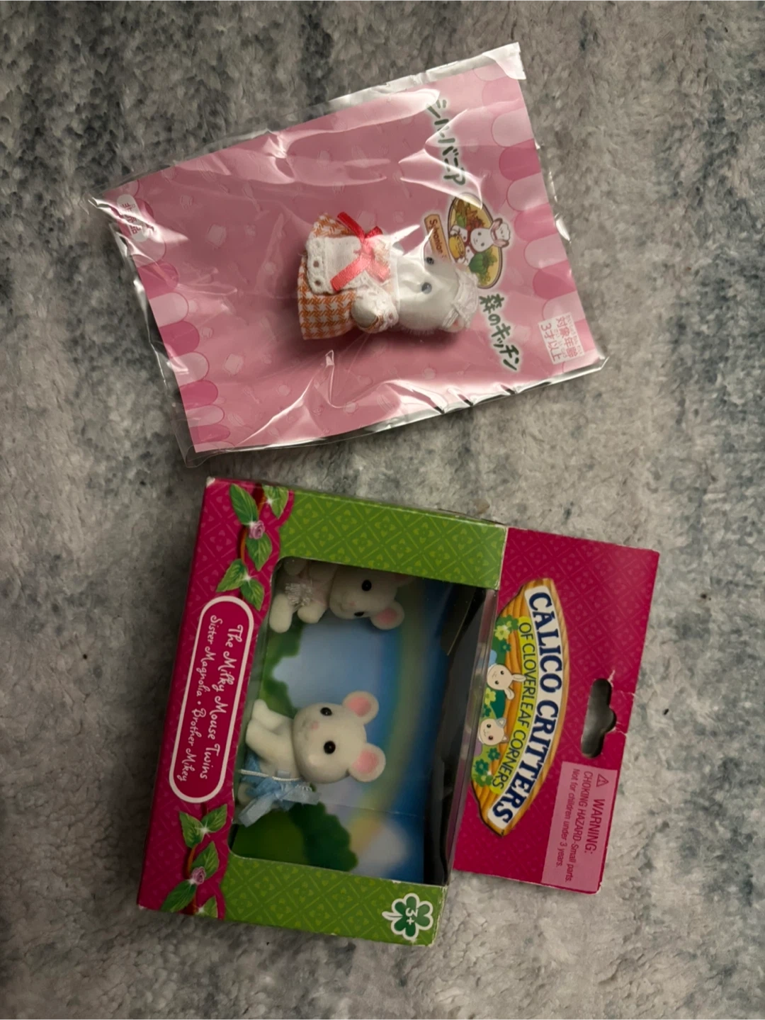 Selling a set of Calico Critters Milky Mouse Twins and one from Japan! Box is slightly damaged during moving process.