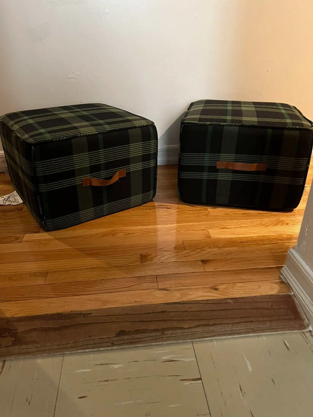 Selling a set of two plaid ottomans. They're in great shape Perfect for extra seating or a footrest!