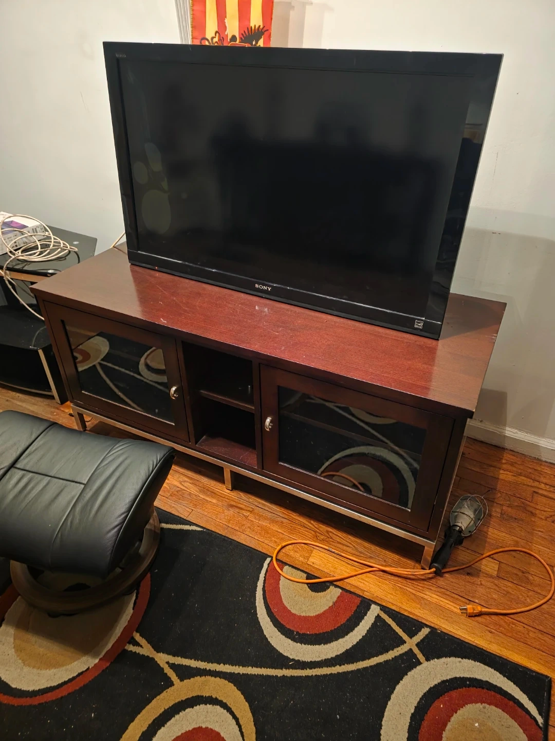 1 / 21 / 2Buy & SellWood TV Stand/Entertainment CenterWood TV Stand/Entertainment Center$100Here's a wooden TV stand or entertainment center. It has a nice finish and glass doors. Perfect for your living room!WHERE TO MEETnear SchoolView MapSELLERWillMarine Park654 reviews0 chatsΒ·1 favoritesΒ·8 viewsSEND CHAT TO SELLERHi Will! Iβm interested in your listing.Hi Will! Iβm interested in your listing.Get the Karrot app to chatSign In to chat