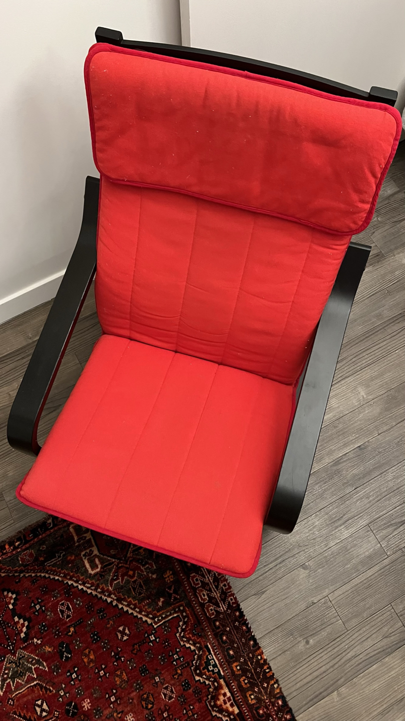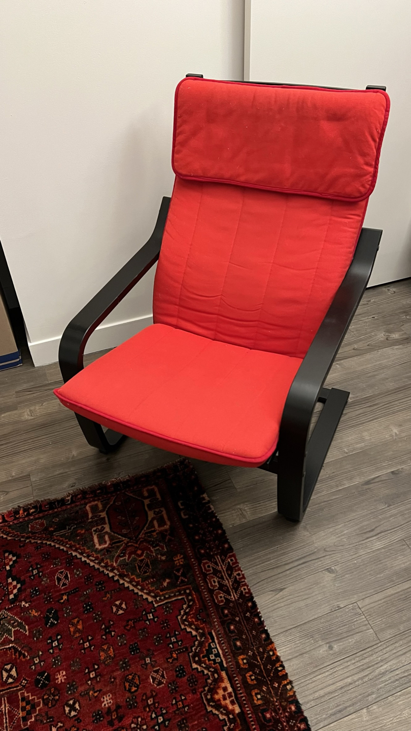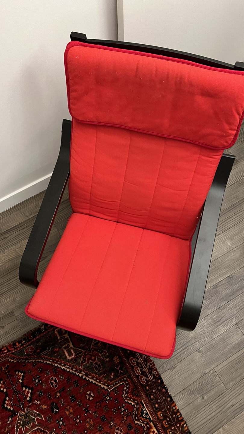 Moved and no longer needed. Pet and smoke free home. Armchair Measurements Width: 26 3/4 " Depth: 32 1/4 " Height: 39 3/8 " Seat width: 22 " Seat depth: 19 5/8 " Seat height: 16 1/2 "