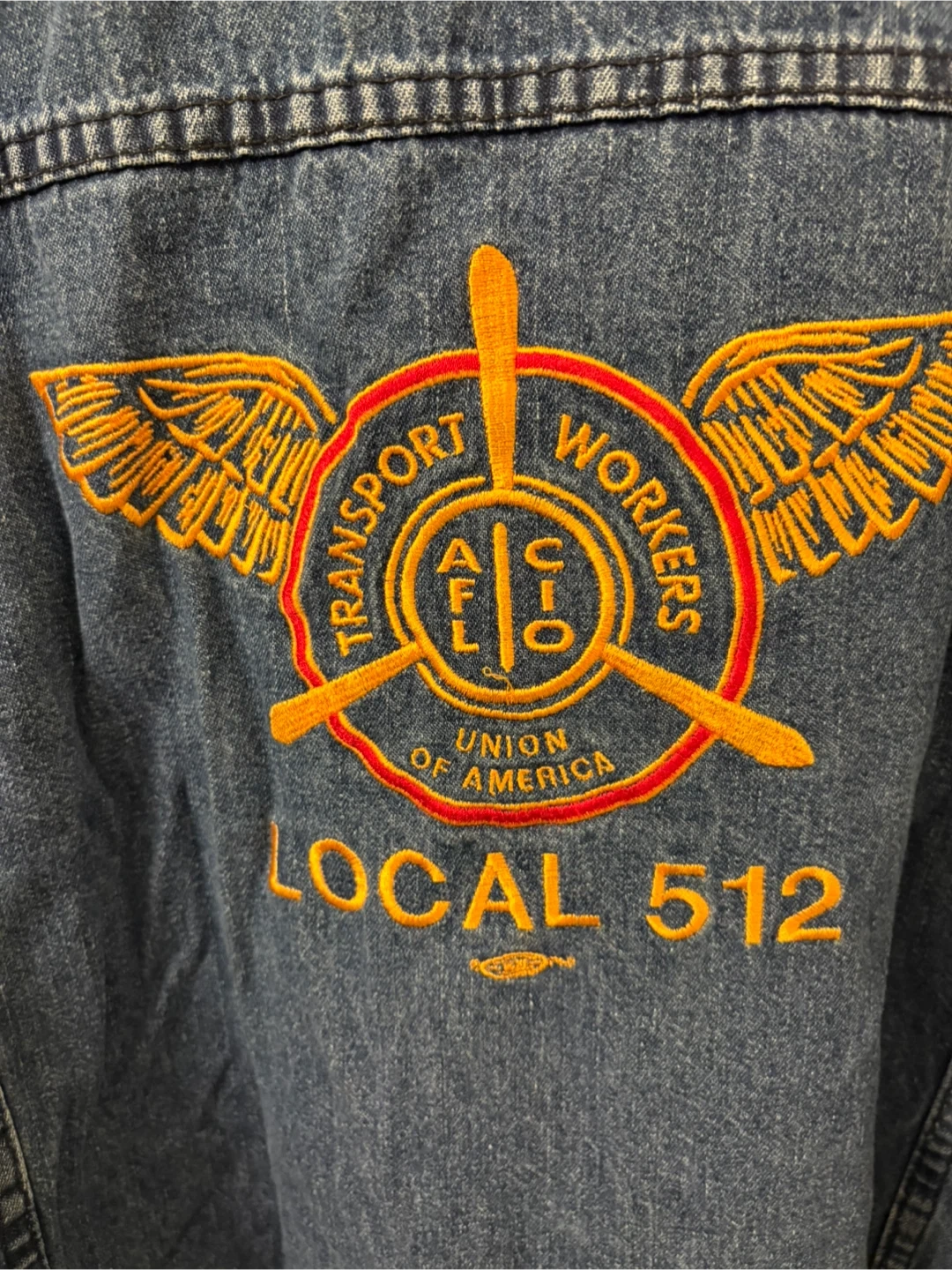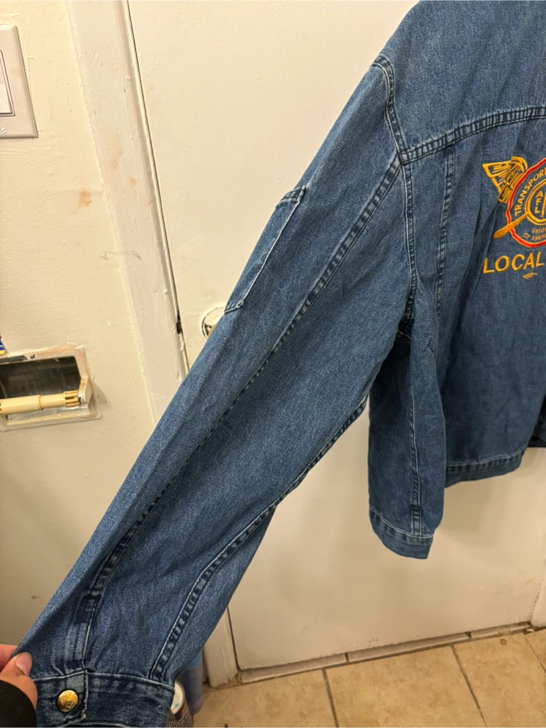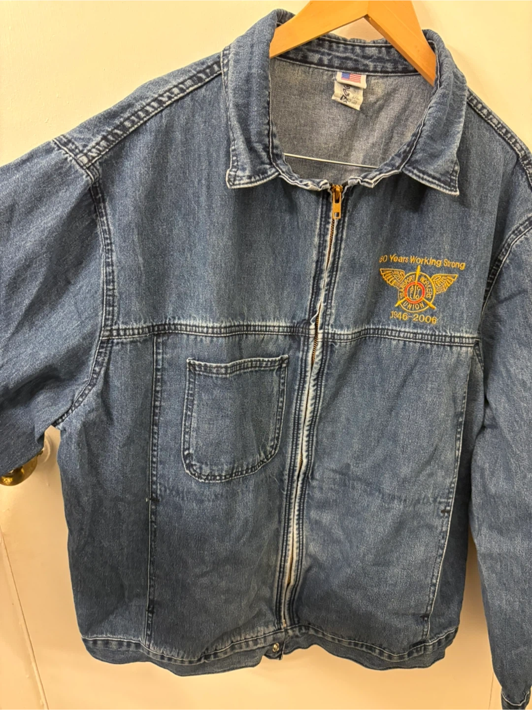 25Selling a Pointer Brand denim jacket. The jacket has a zipper closure and an embroidered logo on the front and back. It's in good condition and ready for a new home. Jacket may have some wear from previous use.