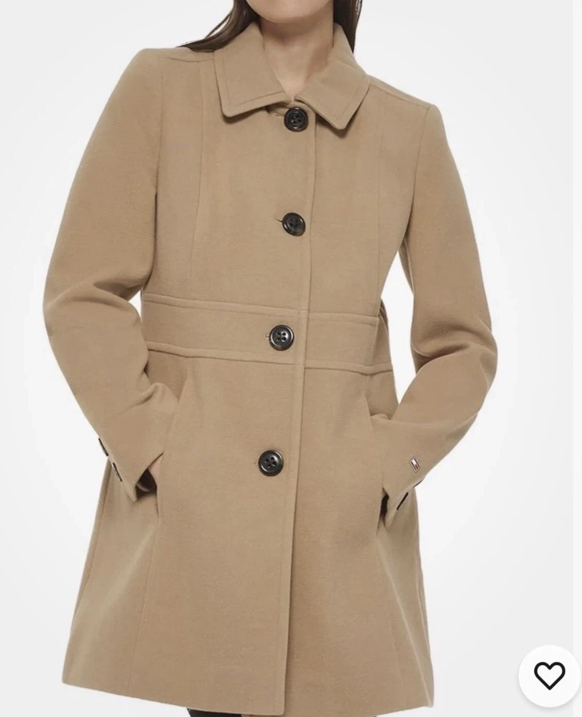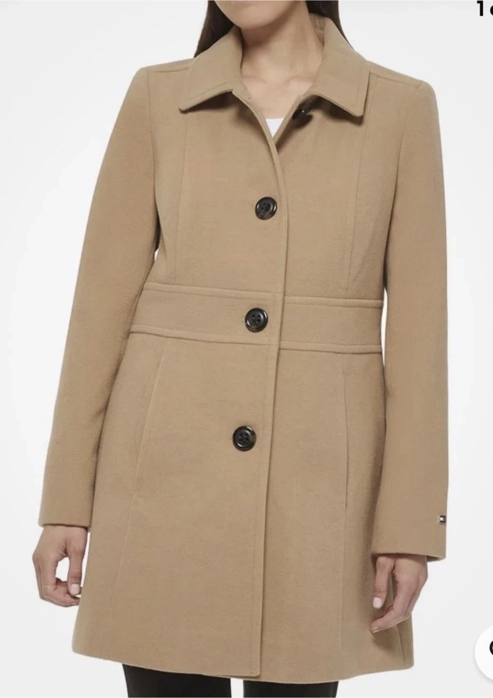 Selling a Tommy Hilfiger coat in a beautiful tan color. It's a size small petite and in great like new condition! Perfect for staying warm and stylish. The coat features a classic design with button closures and a flattering fit.