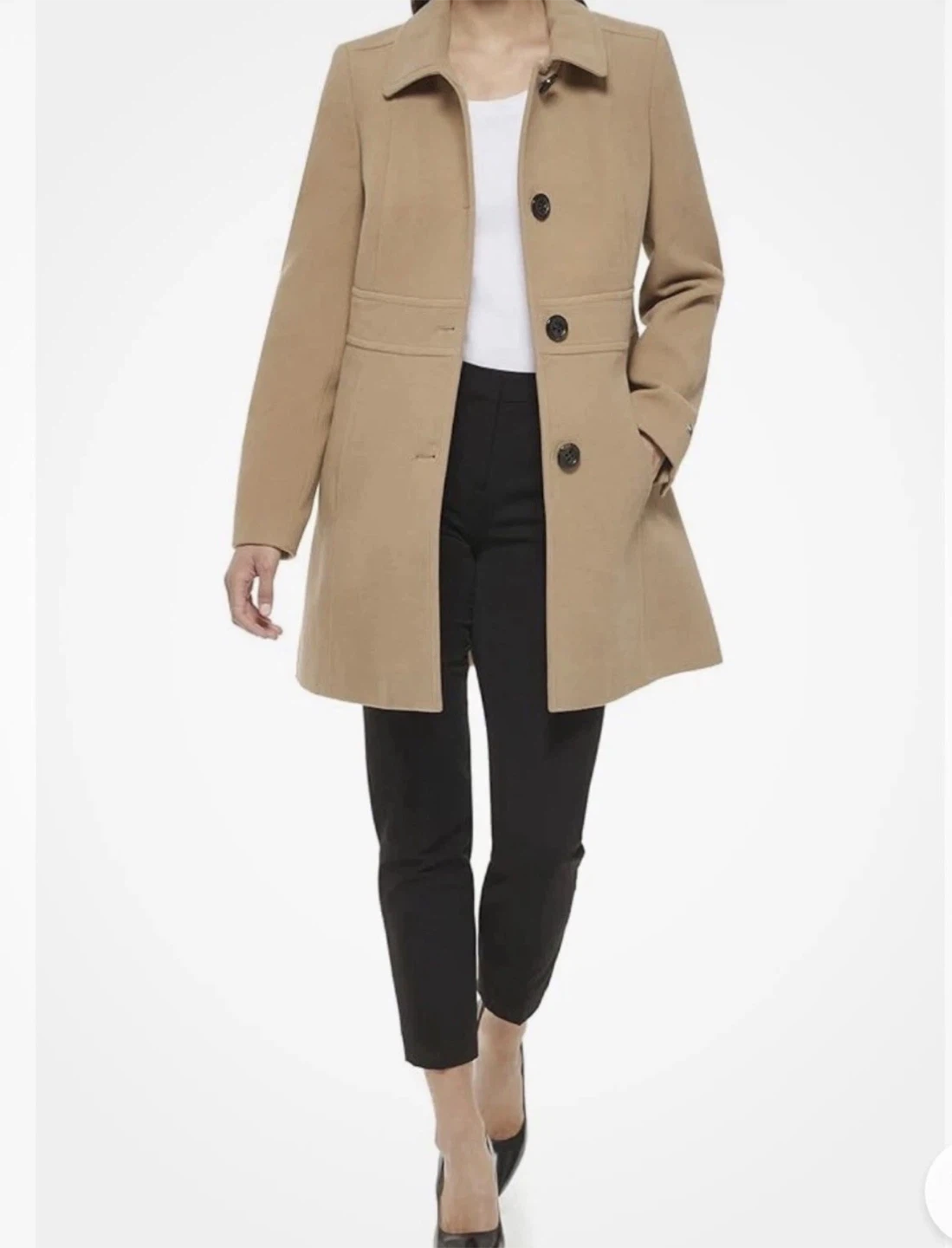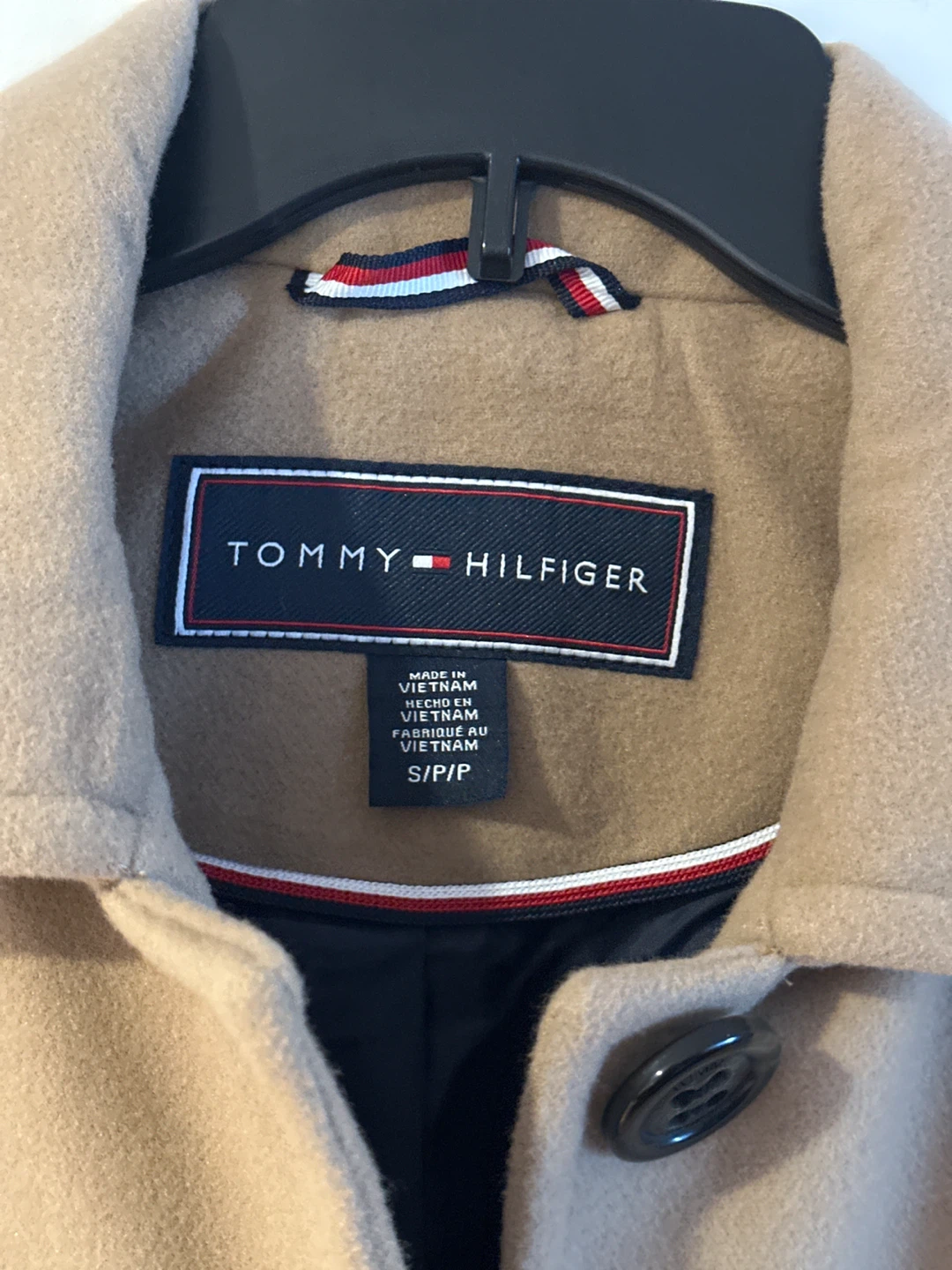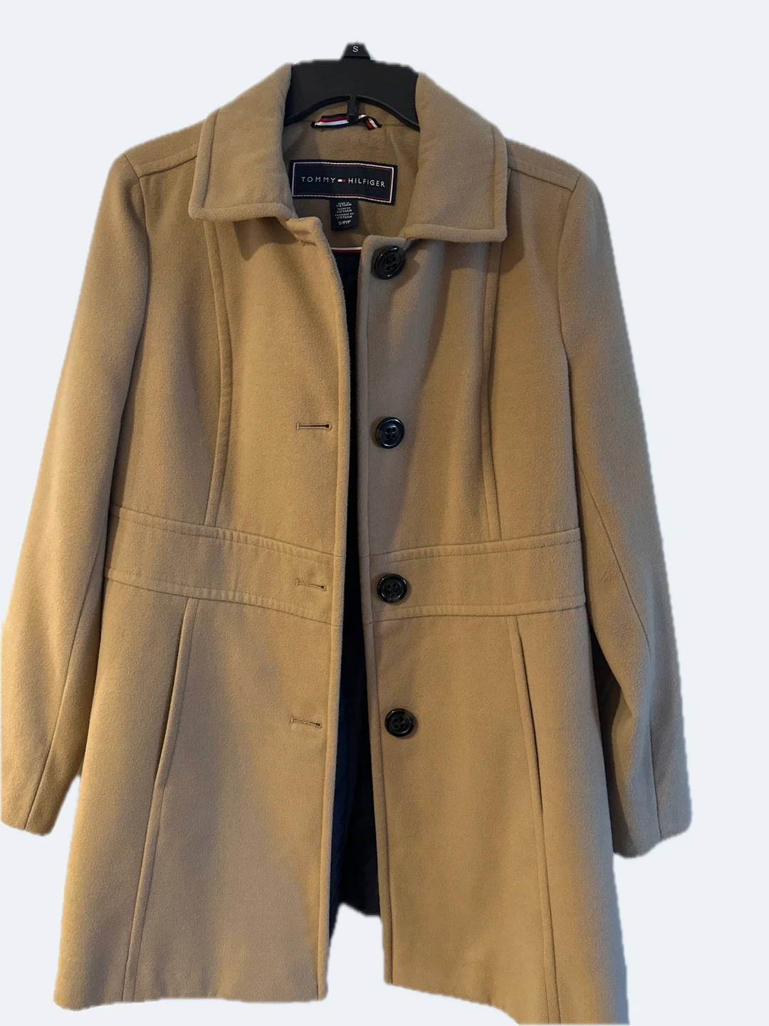 Selling a Tommy Hilfiger coat in a beautiful tan color. It's a size small petite and in great like new condition! Perfect for staying warm and stylish. The coat features a classic design with button closures and a flattering fit.