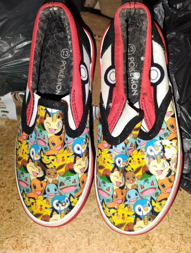 Selling a pair of Pokémon slip-on shoes for kids! They feature a fun, colorful design with lots of Pokémon characters. The size is 13.