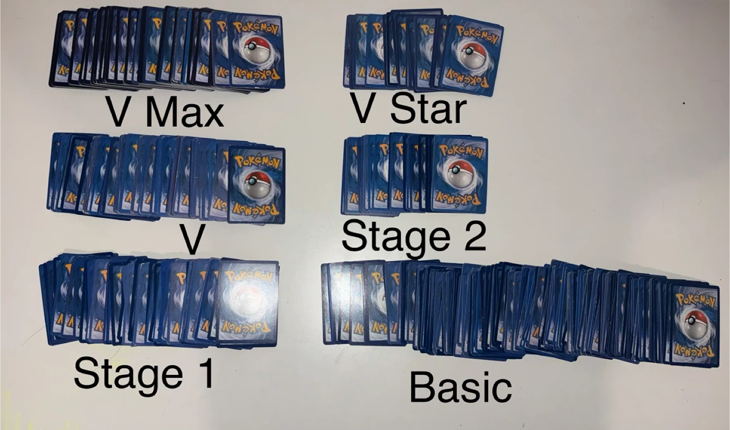 15Selling a collection of 466 Pokémon trading cards! Includes 98 V Max, 25 V Star, 79 V, 22 Stage 2, 71 Stage 1, and 171 Basic cards