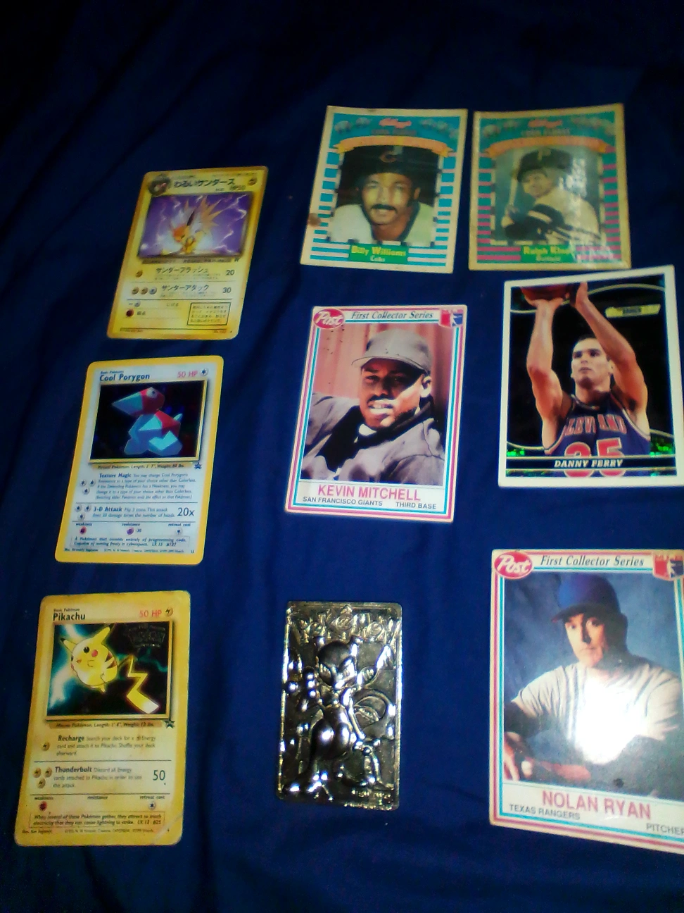 25Selling a collection of trading cards! Includes Pokemon cards like Pikachu and Porygon, and baseball cards featuring players like Kevin Mitchell and Nolan Ryan