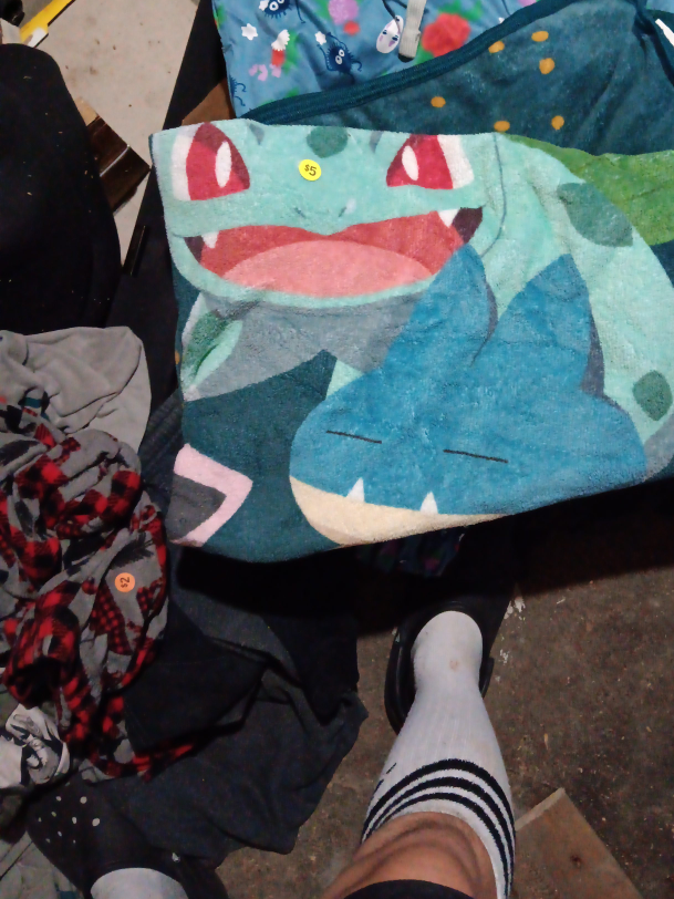Selling a fleece throw blanket featuring Pokemon characters Bulbasaur and Snorlax! It's in good condition and ready for a new home