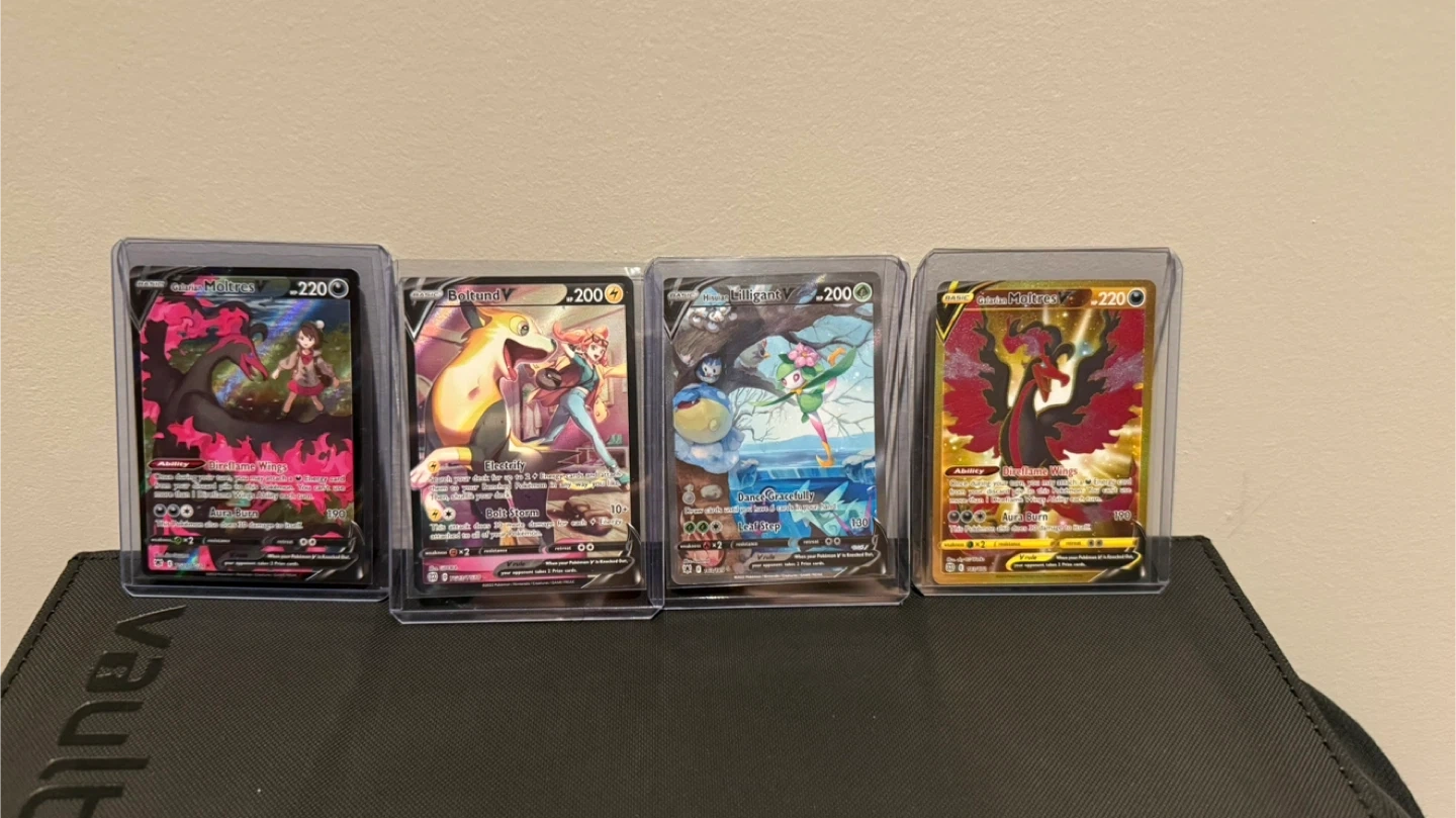 10All cards near mint: Moltres V gold: asking $14 Moltres V alt art: asking $20 Boltund V alt art: asking $10 Liligant v alt art: asking $18
