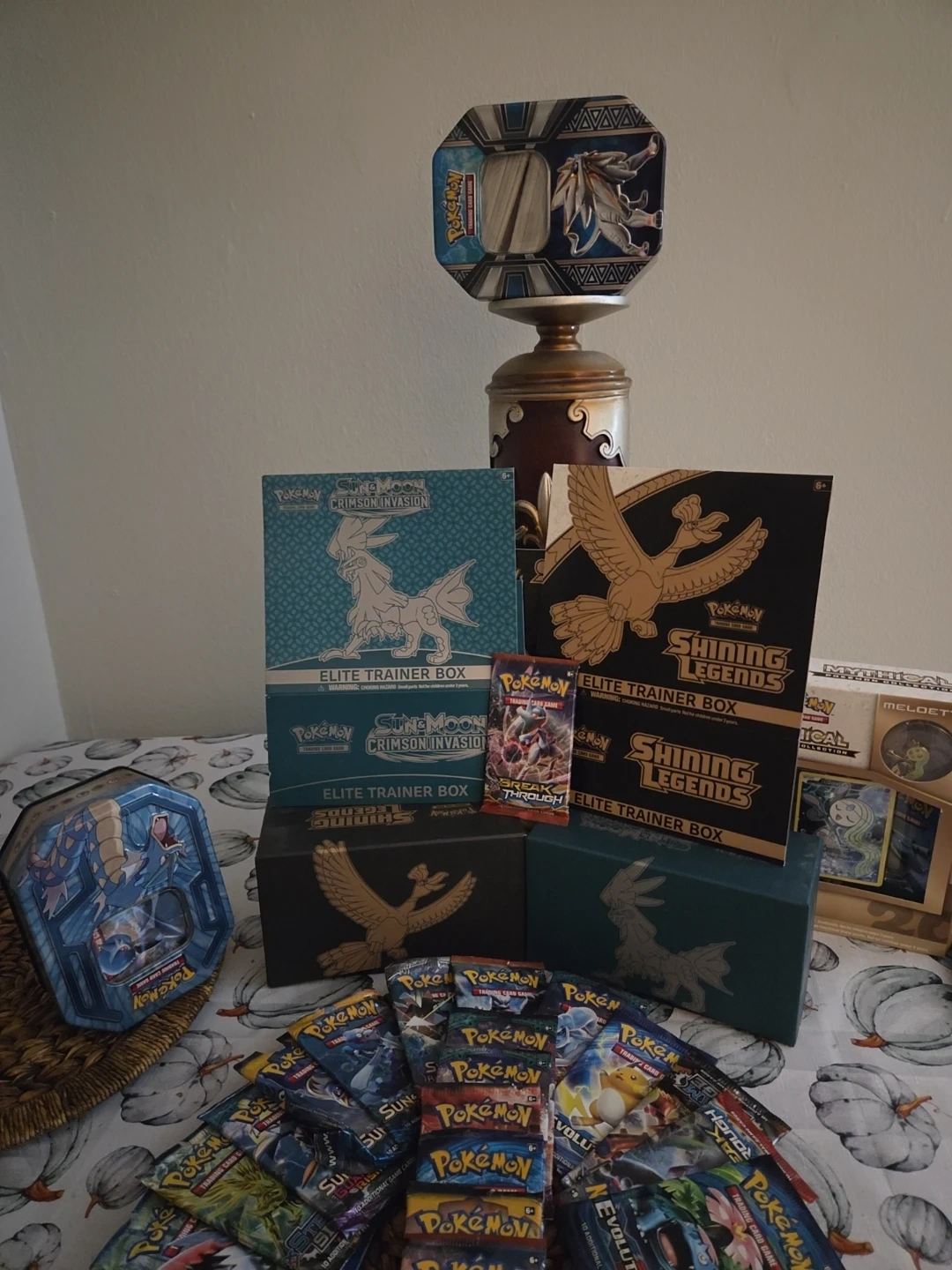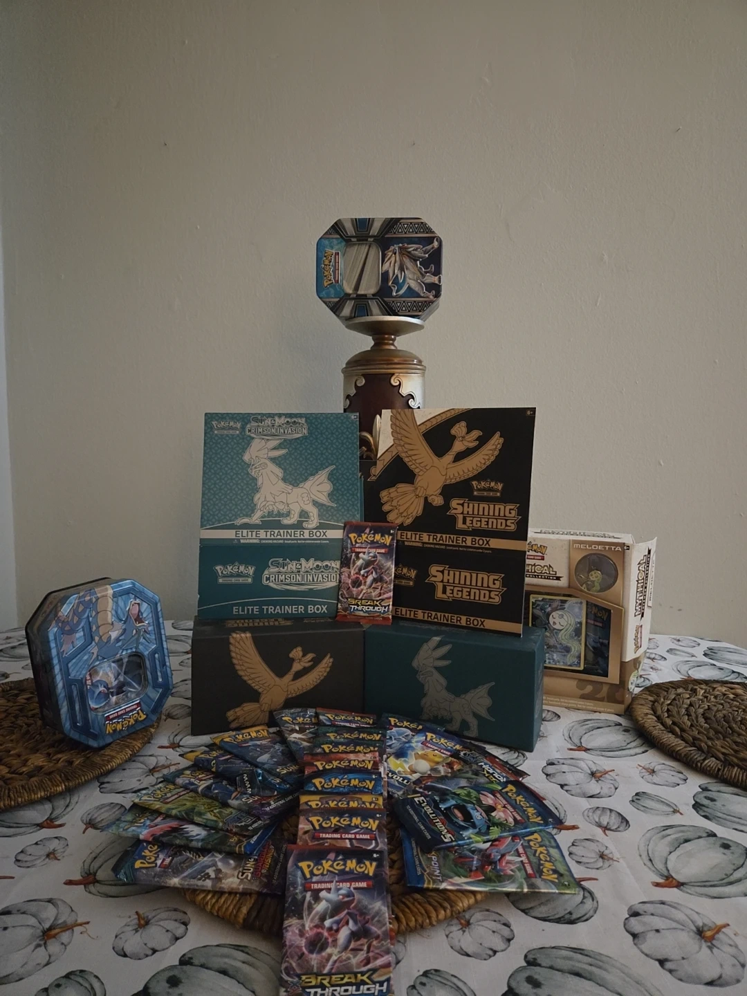 65Selling a big collection of Pokemon Trading Card Game items! This lot includes: - Elite Trainer Boxes from various sets (Crimson Invasion, Shining Legends, and more) - Multiple booster packs from different expansions - Tins and other collectible items Perfect for collectors or players looking to expand their collection!