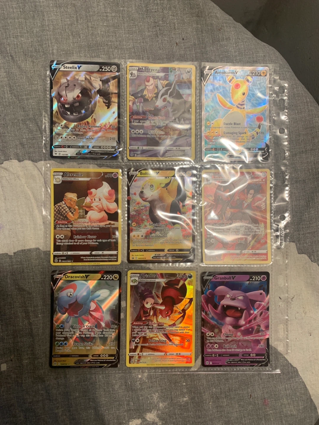 92Selling a set of Pokemon trading cards! Cards include Steelix V, Ilima & Miltank, Ampharos V, Alcremie V, Boltund V, and others. Great for collectors or players whole lot $25