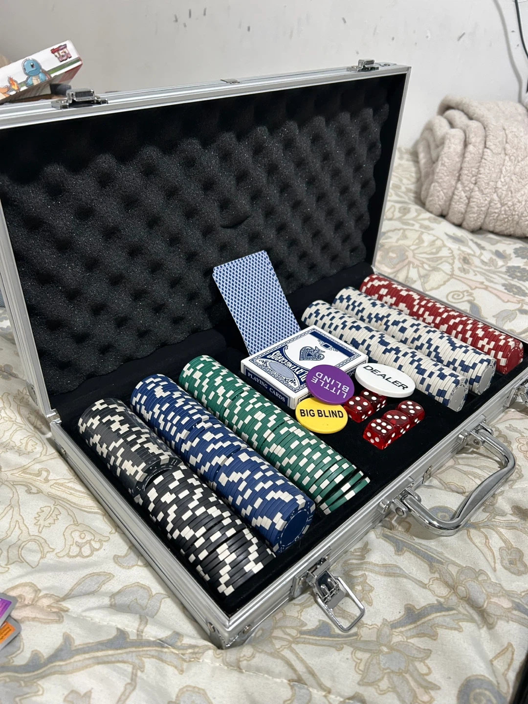 10Selling a complete poker set, perfect for game nights! It comes with chips, cards, and dice, all neatly organized in a sturdy carrying case. Ready for a new home!