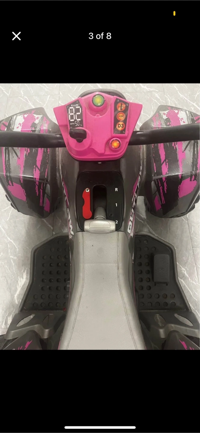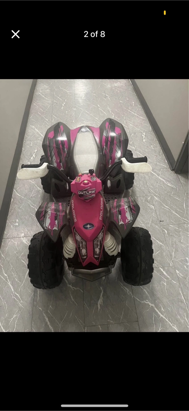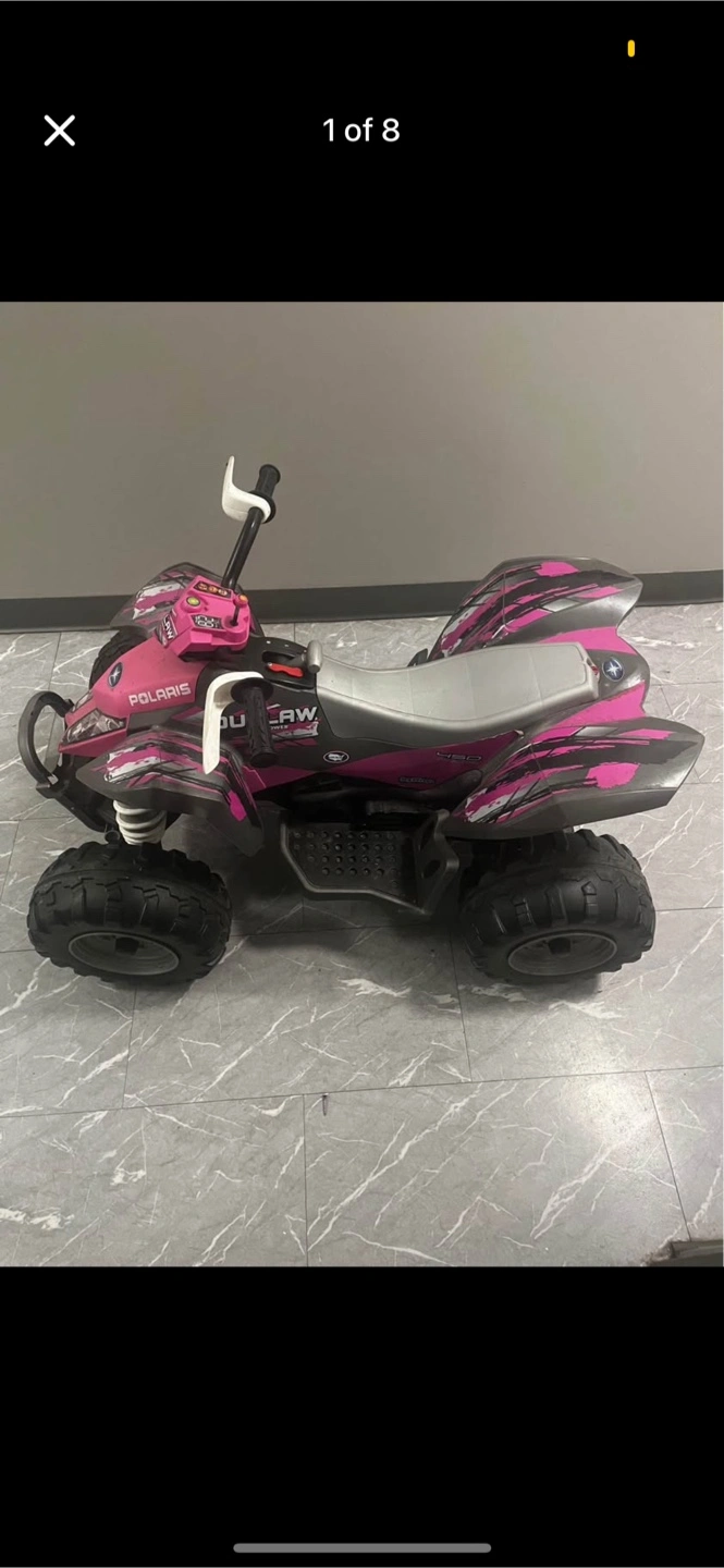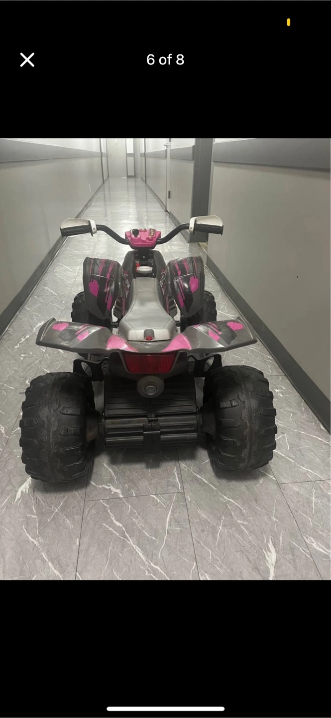 Pink and gray children's electric ATV. Includes battery and charger. Barely Used and in condition.
