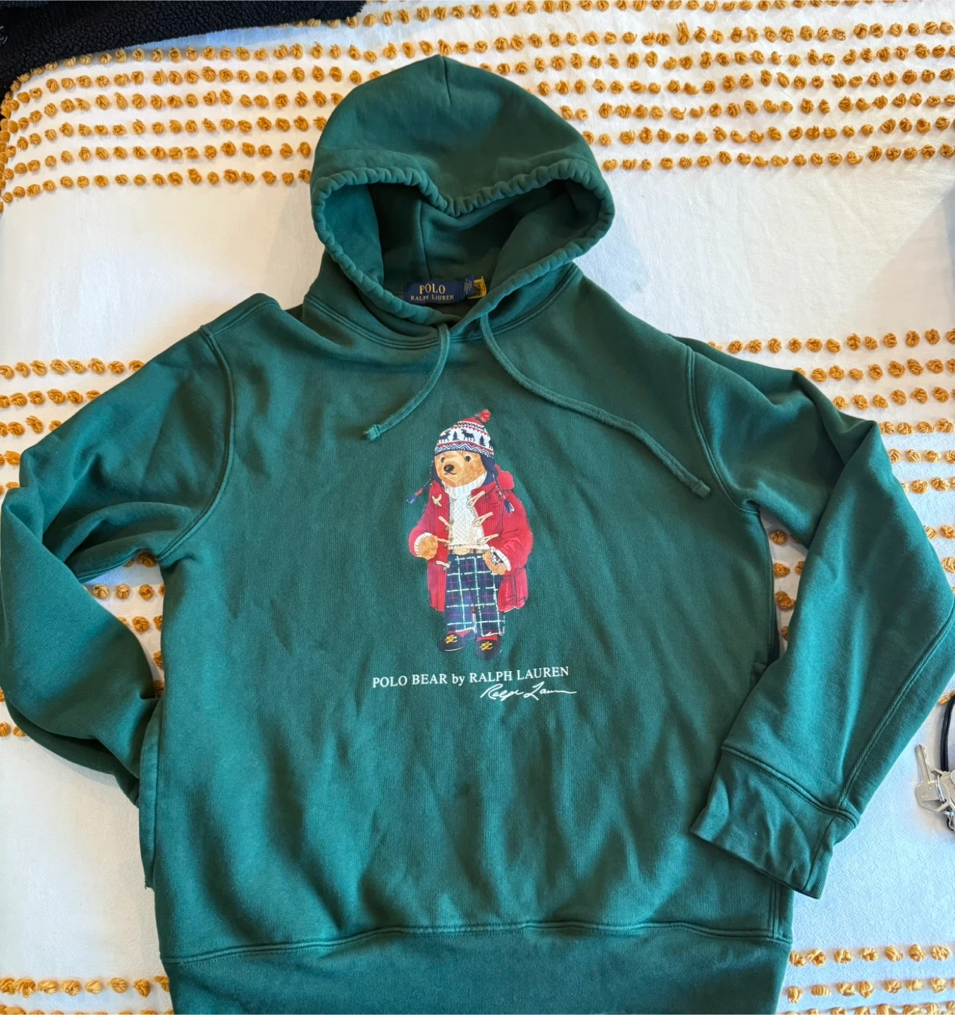 65Selling a Polo Ralph Lauren bear hoodie in size small! It's a comfy green color with the classic Polo Bear design on the front. Perfect for staying cozy and stylish.