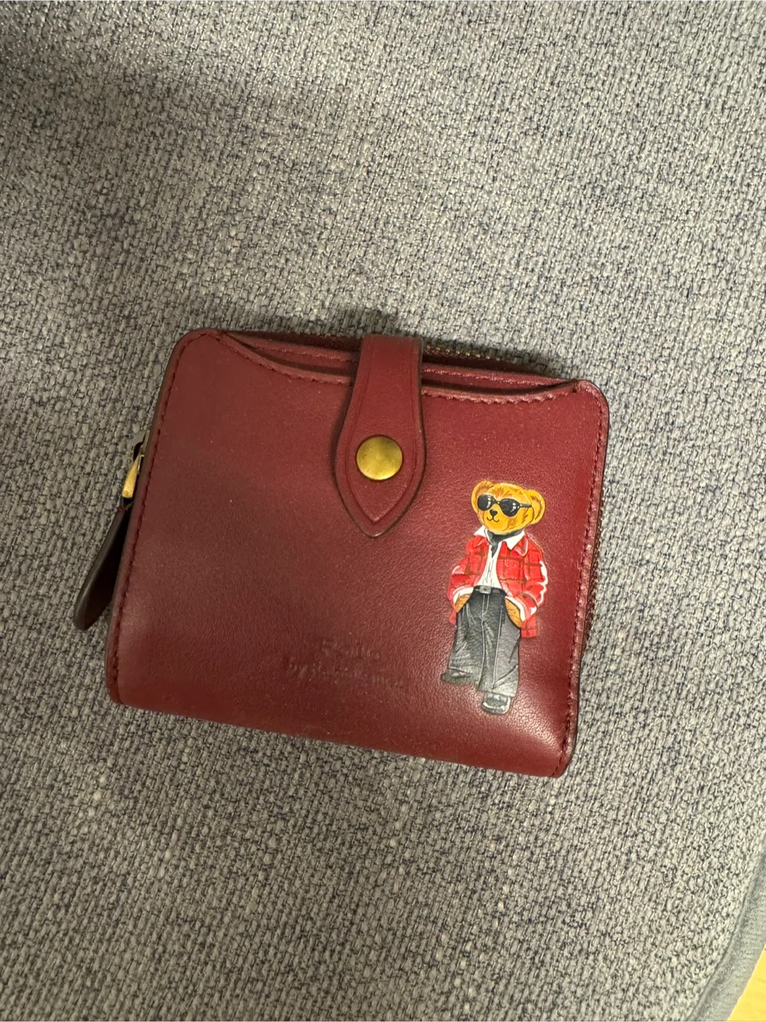 65Selling a cute Polo Ralph Lauren wallet featuring the iconic Polo Bear! The wallet is a beautiful burgundy color and made of leather. It has a snap closure and a zippered compartment for change. Perfect for everyday use!