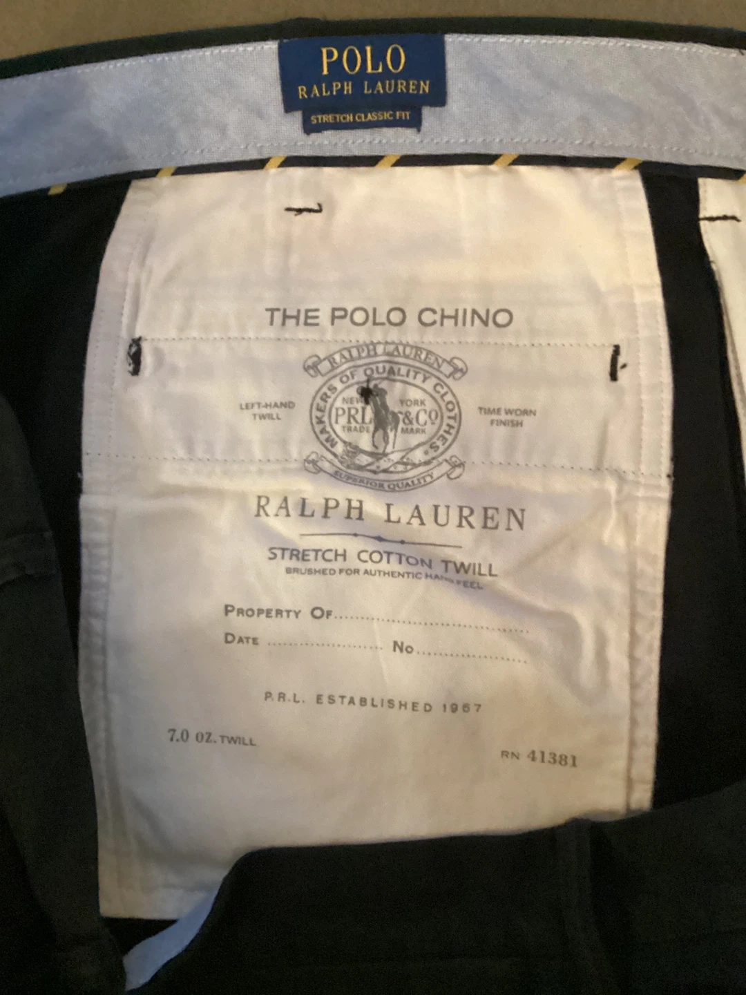 Selling a pair of Polo Ralph Lauren chino pants in a classic fit. These are a stretch cotton twill, brushed for an authentic feel. The pants are a 7.0 oz twill.