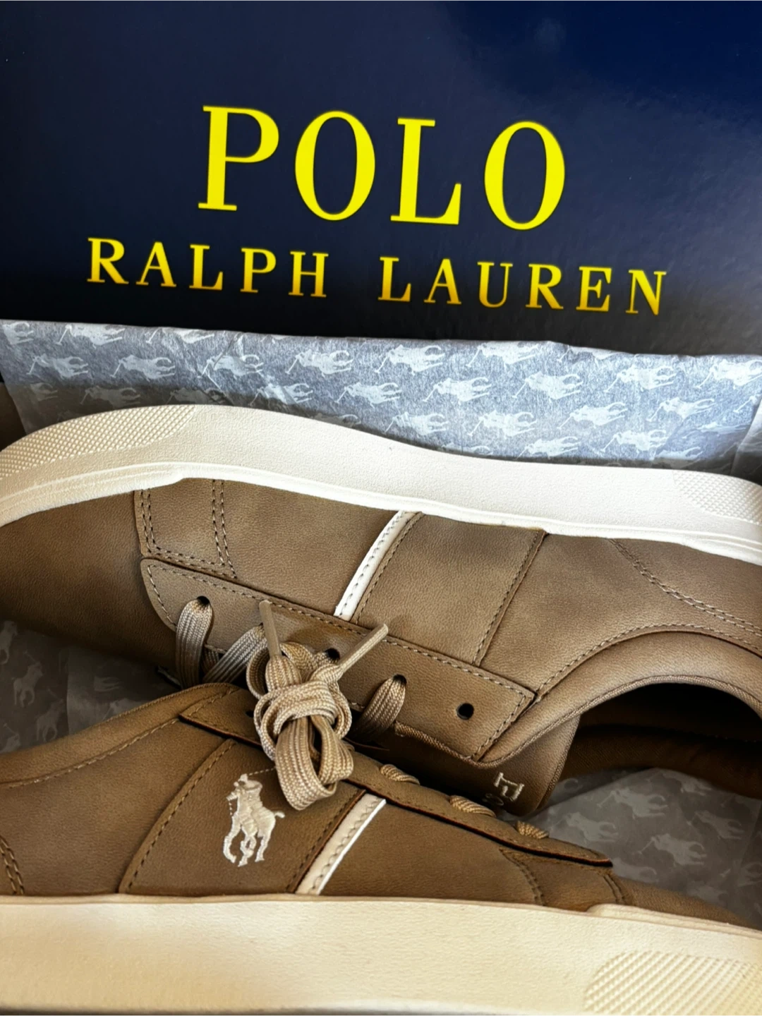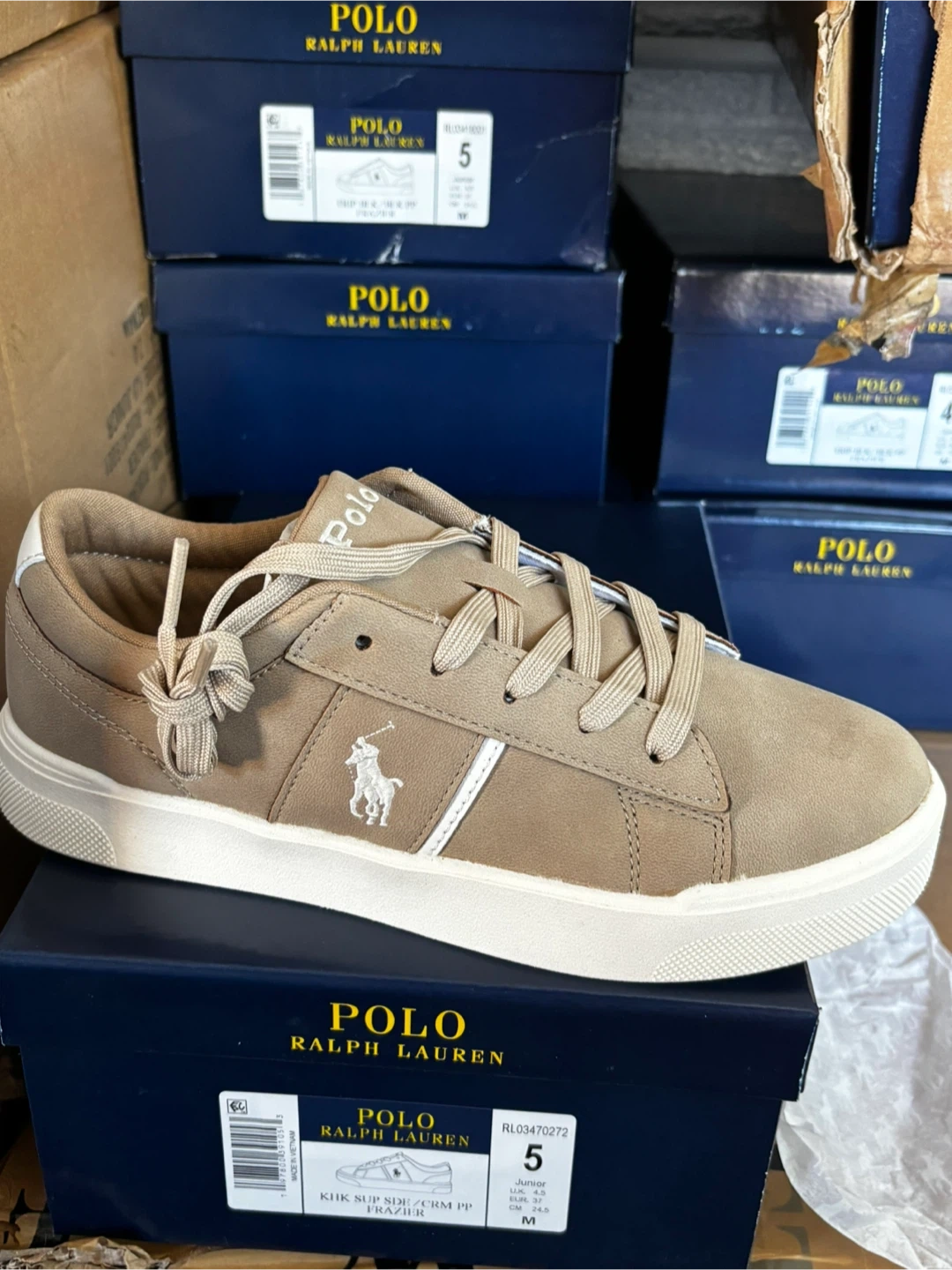 75Selling a pair of Polo Ralph Lauren Junior khaki slip-on sneakers in various sizes! They come with the original box. (Size Available: 5,6, & 7M)