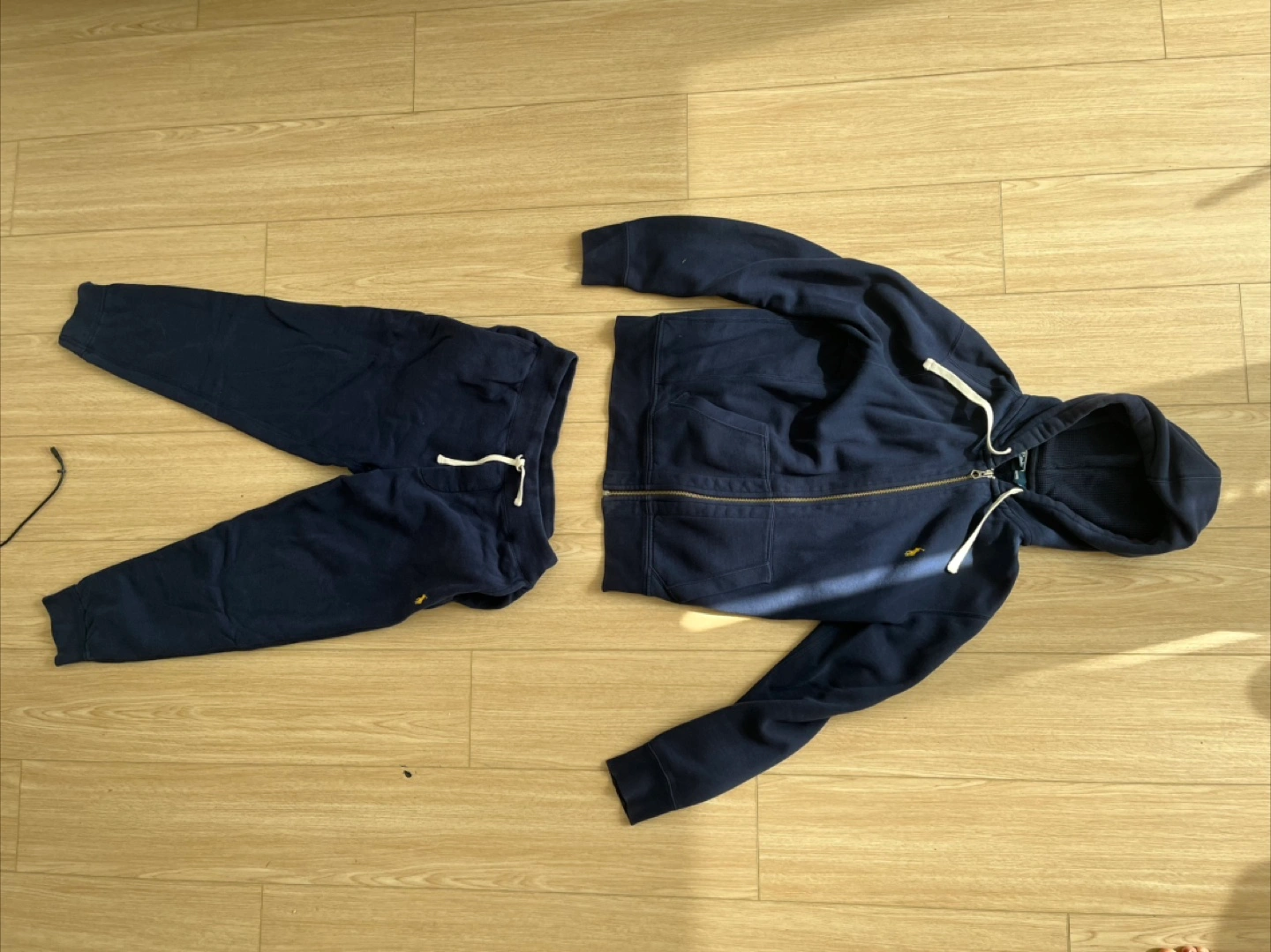 Selling a Polo Ralph Lauren tracksuit in navy blue - Includes a zip-up hoodie and matching sweatpants - Size medium - Features the classic Polo logo - Great for lounging or casual wear