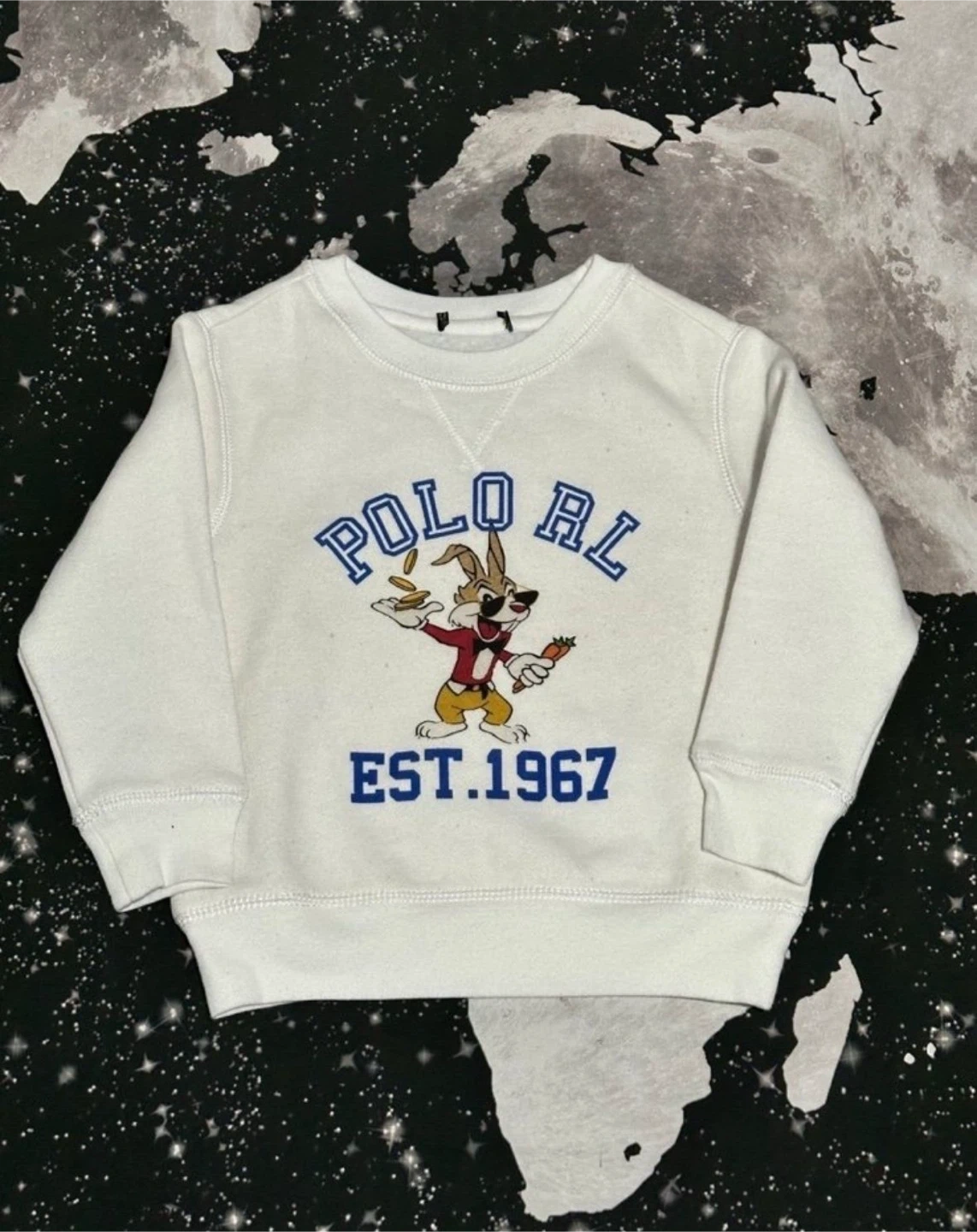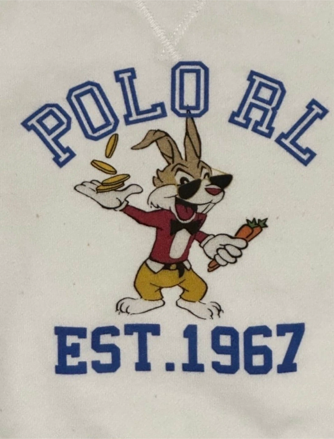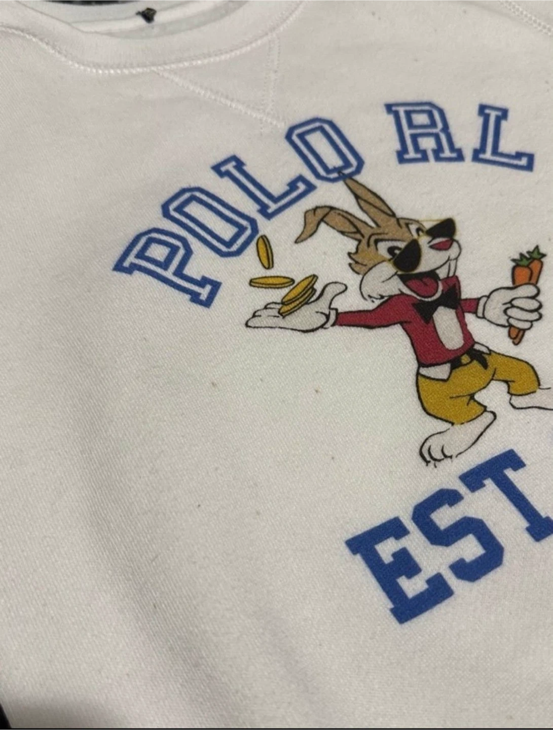 Polo Ralph Lauren ‘Good Fortune’ Lunar New Year Lucky Rabbit crewneck sweatshirt, color is white with front character design. Preowned condition *front discoloration spots* Sz. 4 Boys Measurements (14”x16”)