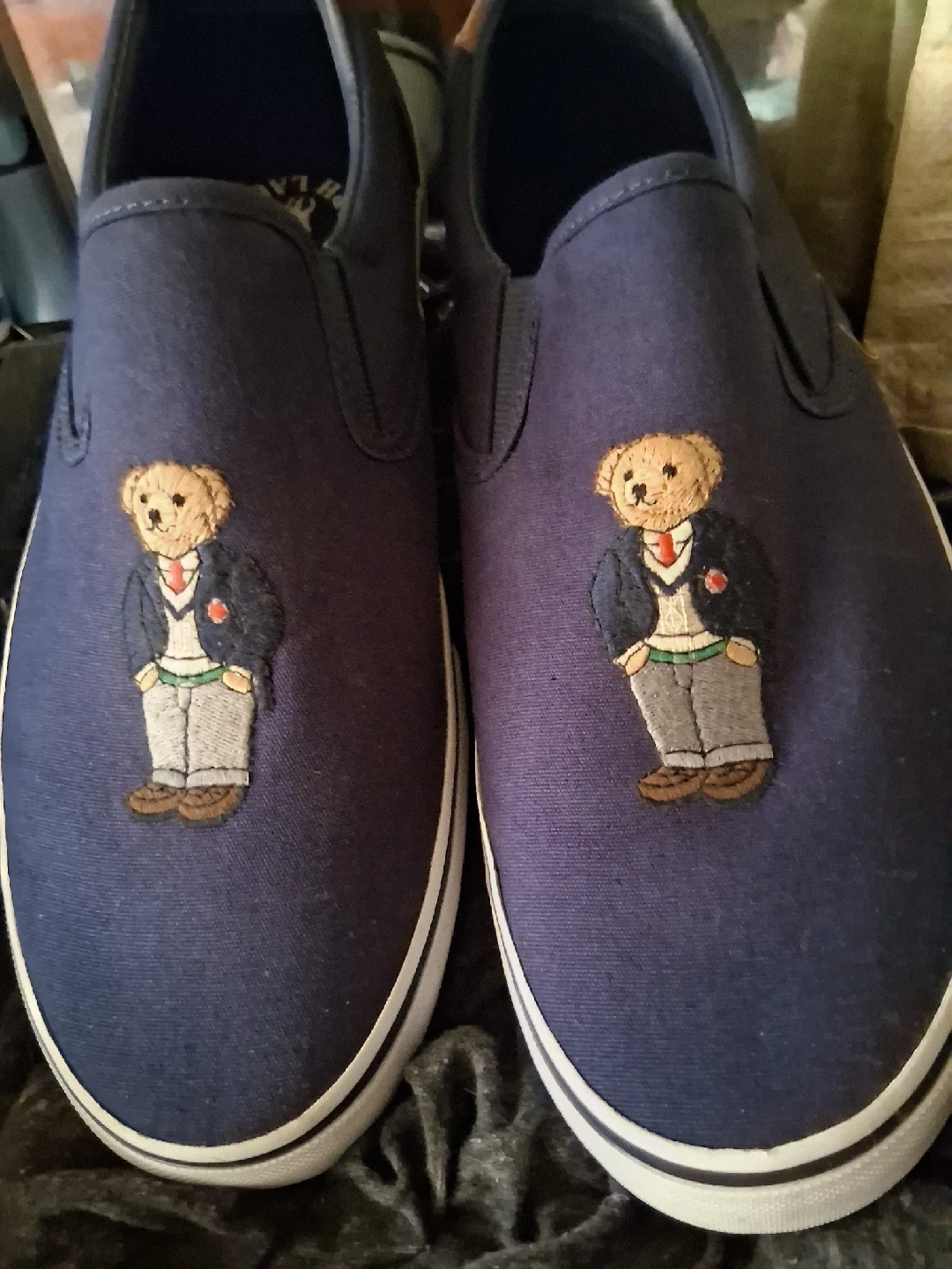 15These Polo Ralph Lauren slip-on sneakers are a stylish and comfortable choice! They feature the iconic Polo bear design and a classic navy color. Perfect for casual wear!