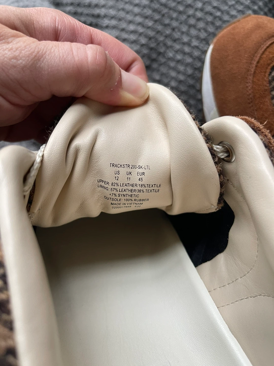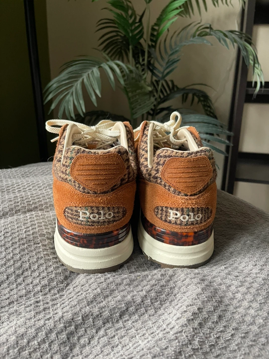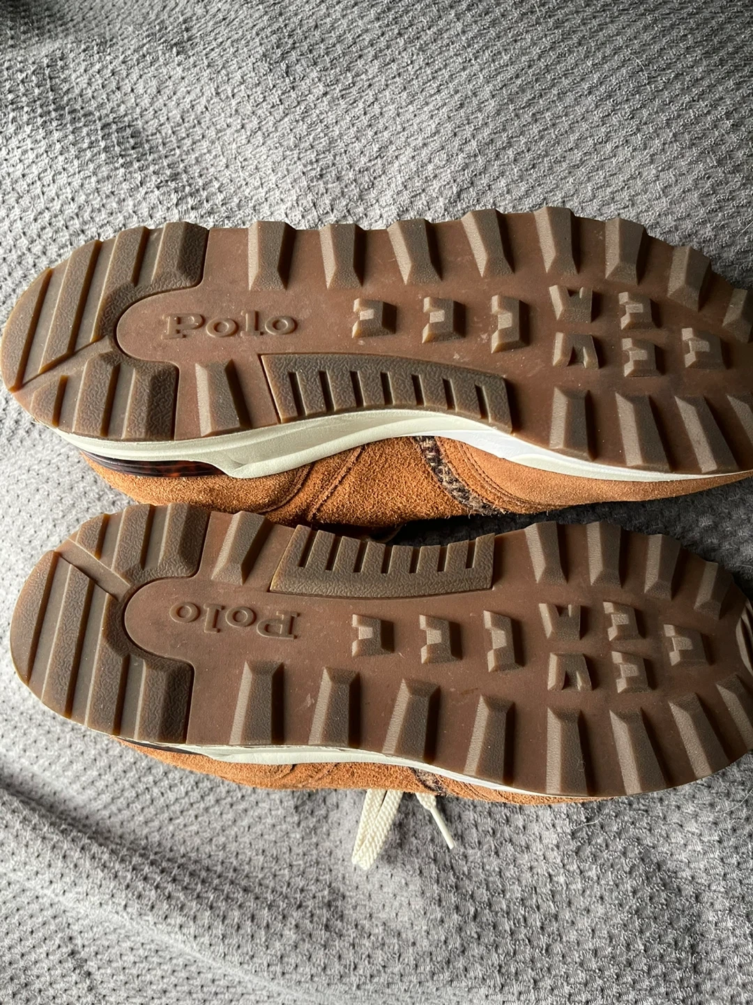 Selling a pair of Polo Ralph Lauren Trackstr 200 sneakers in brown! These are a size 12 US, 11 UK, or 45 EUR. The upper is made of 62% leather, 18% textile, and 20% synthetic. The lining is 64% leather and 36% textile, with 7% synthetic. The outsole is 100% rubber