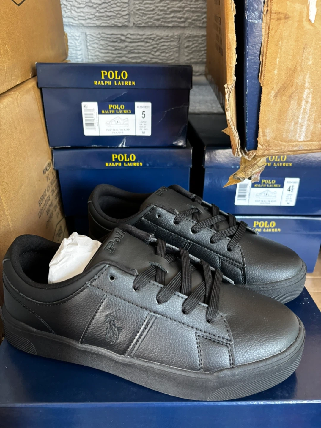 75Selling a pair of Polo Ralph Lauren Trip Frazier sneakers in black! Various Sizes available! Comes with the original box (Sizes: 4, 4.5, 5, 5.5, 6, 7M) Perfect for school or formal & casual dressing)