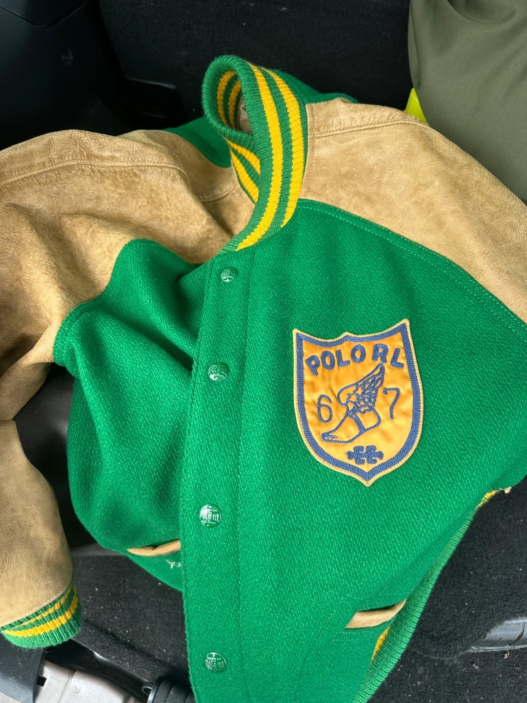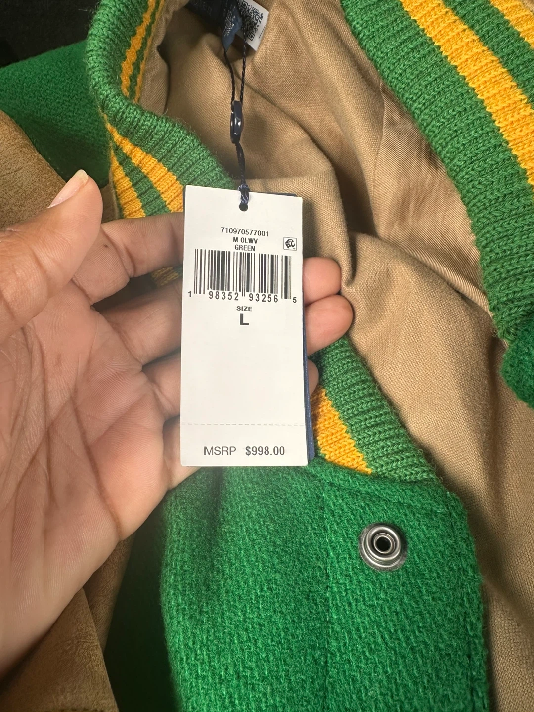 Selling a Polo Ralph Lauren vintage-inspired letterman jacket in size L! The color is Fiji Green and it's in great condition. Originally bought for $998