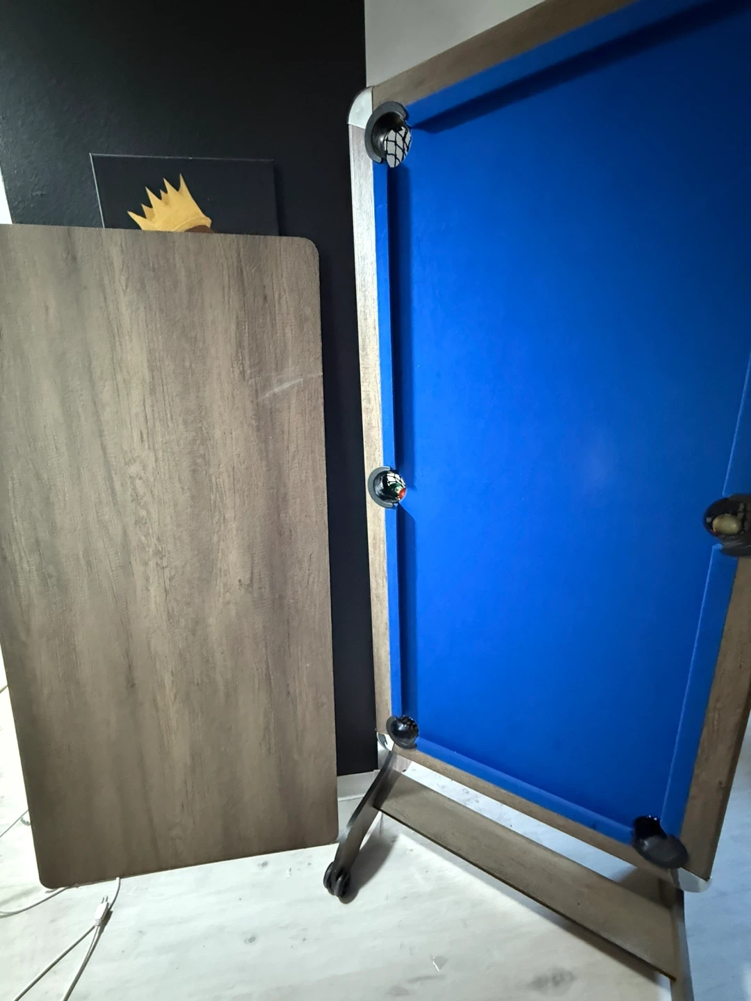 102Selling a pool table with a vibrant blue felt surface. It comes with a wooden cover, perfect for converting it into a regular table when not in use. Great for game nights or adding a touch of fun to your space! I’m also open to trades.