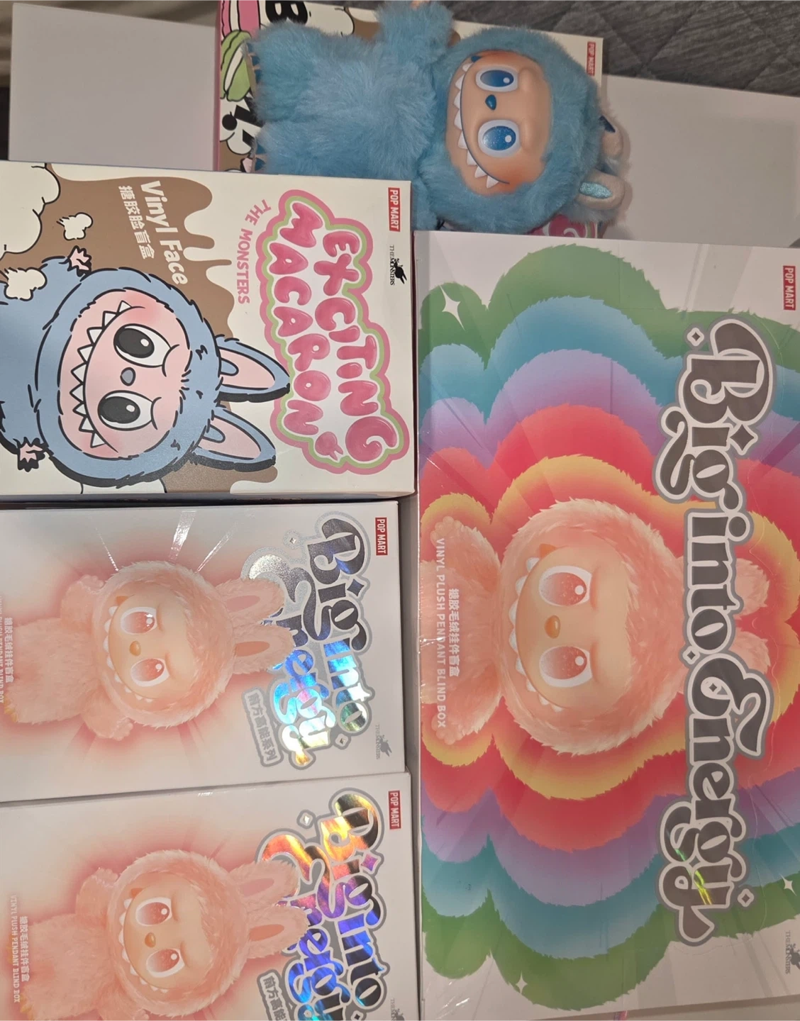 Selling Pop Mart vinyl plush blind boxes. These are super cute and collectible! Each box contains a surprise plush figure. Get yours today!
