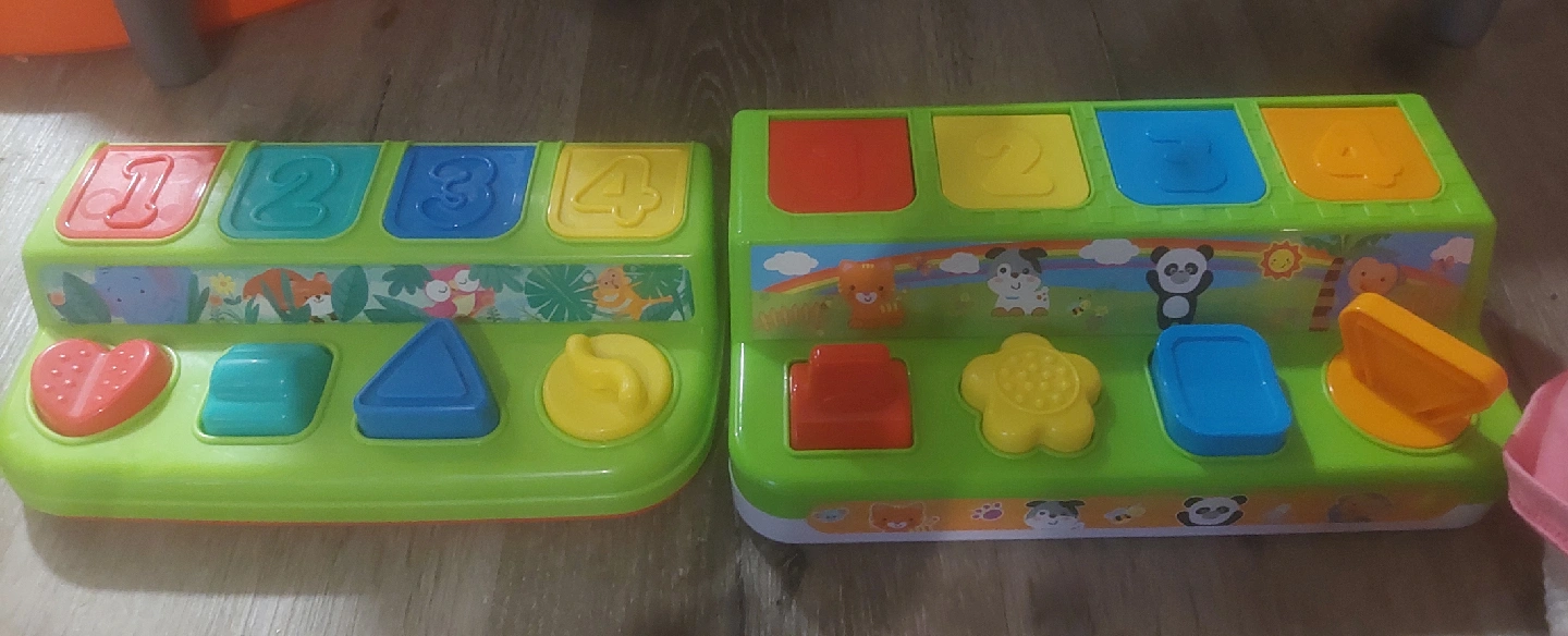 147Selling these fun pop-up animal toys, both for 5 dollars! They're great for little ones learning about animals and shapes. Each toy has different animals that pop up when you press the corresponding shape. Perfect for toddlers!