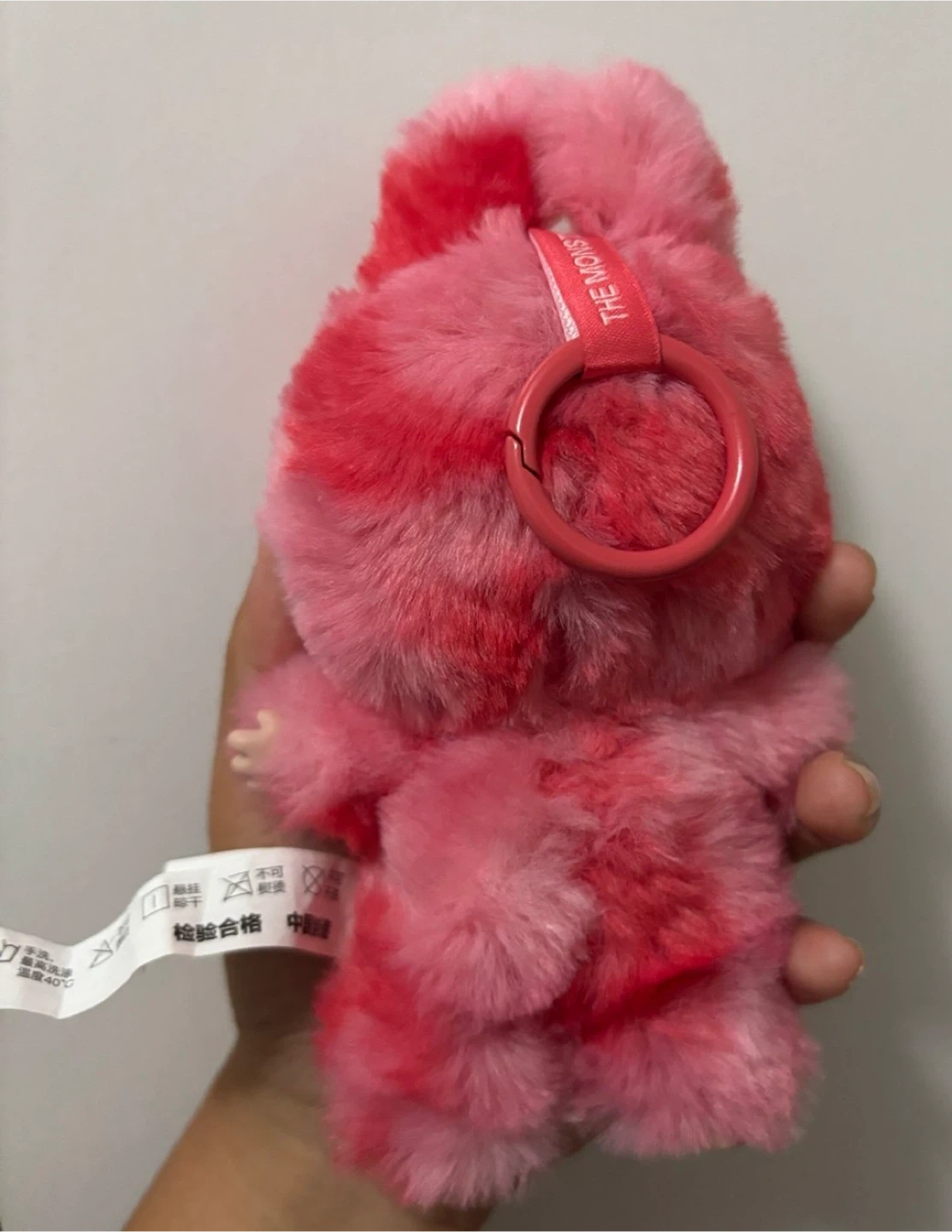 - brand new, no marks, and no defects - bright red and light blue fur - red strap and circular hook - has orginal box and card