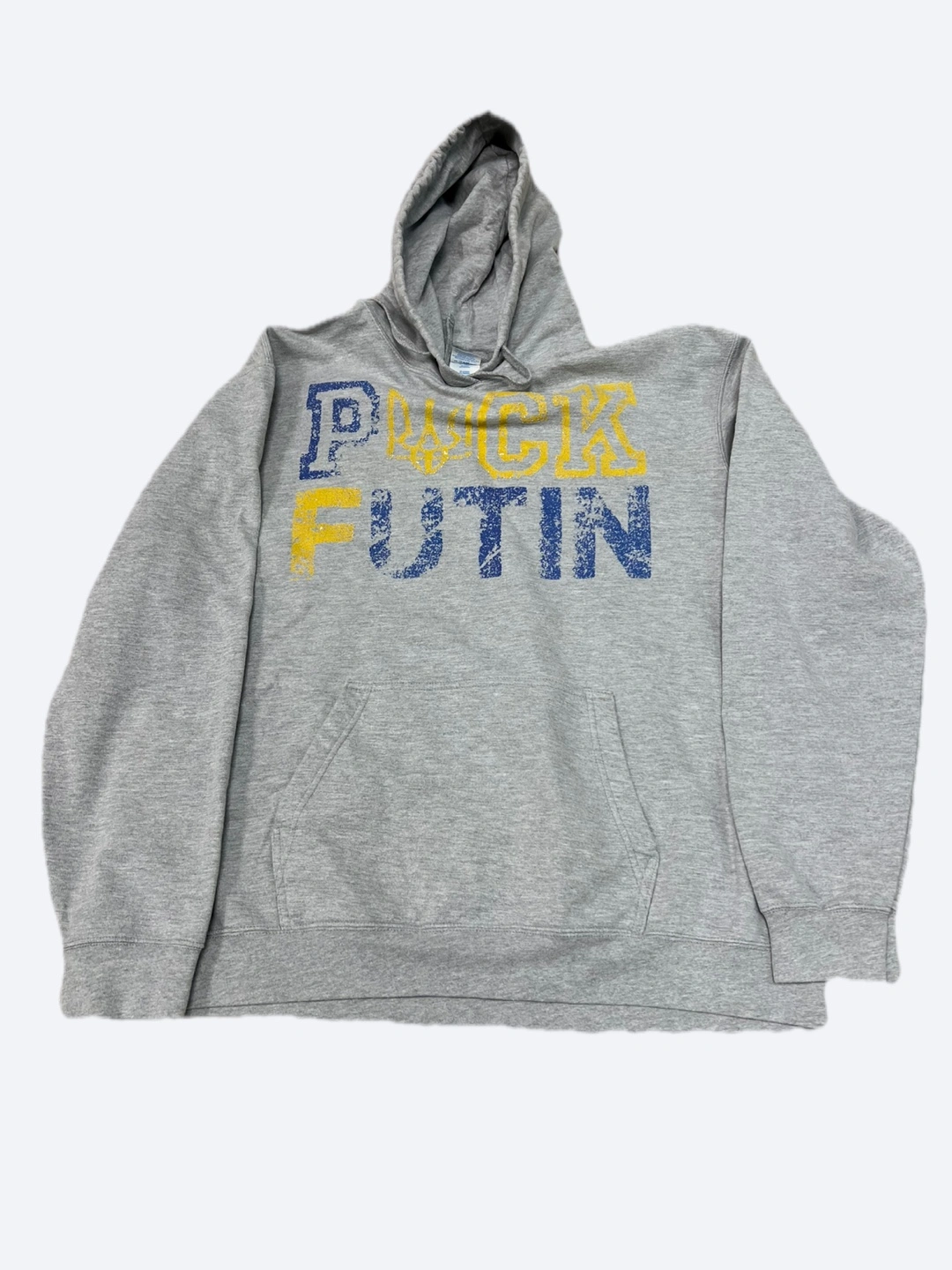 Gray Port & Company Fan Favorite hoodie. Size XL. Features a distressed Pangea Futin graphic on the front. Kangaroo pocket. Ring spun.
