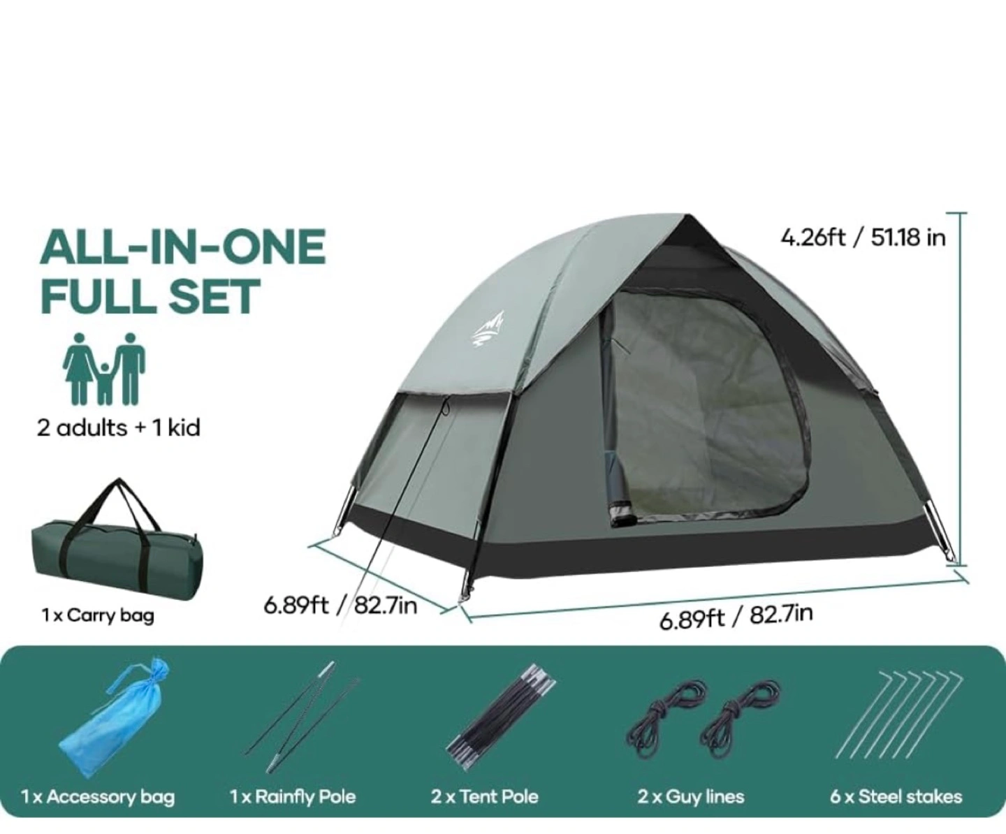 15Camping Tent, 2 in 1 Double Layers Pop up Tent 3 Man Tent 4 Seasons Waterproof Instant Tent Portable Ultralight Family Dome Tent for Backpacking Hiking, Removable Outer Tarpaulin (2-3 Person) Used only once. Bought in Amazon for 40 usd. Come and pick it up in Woodside.