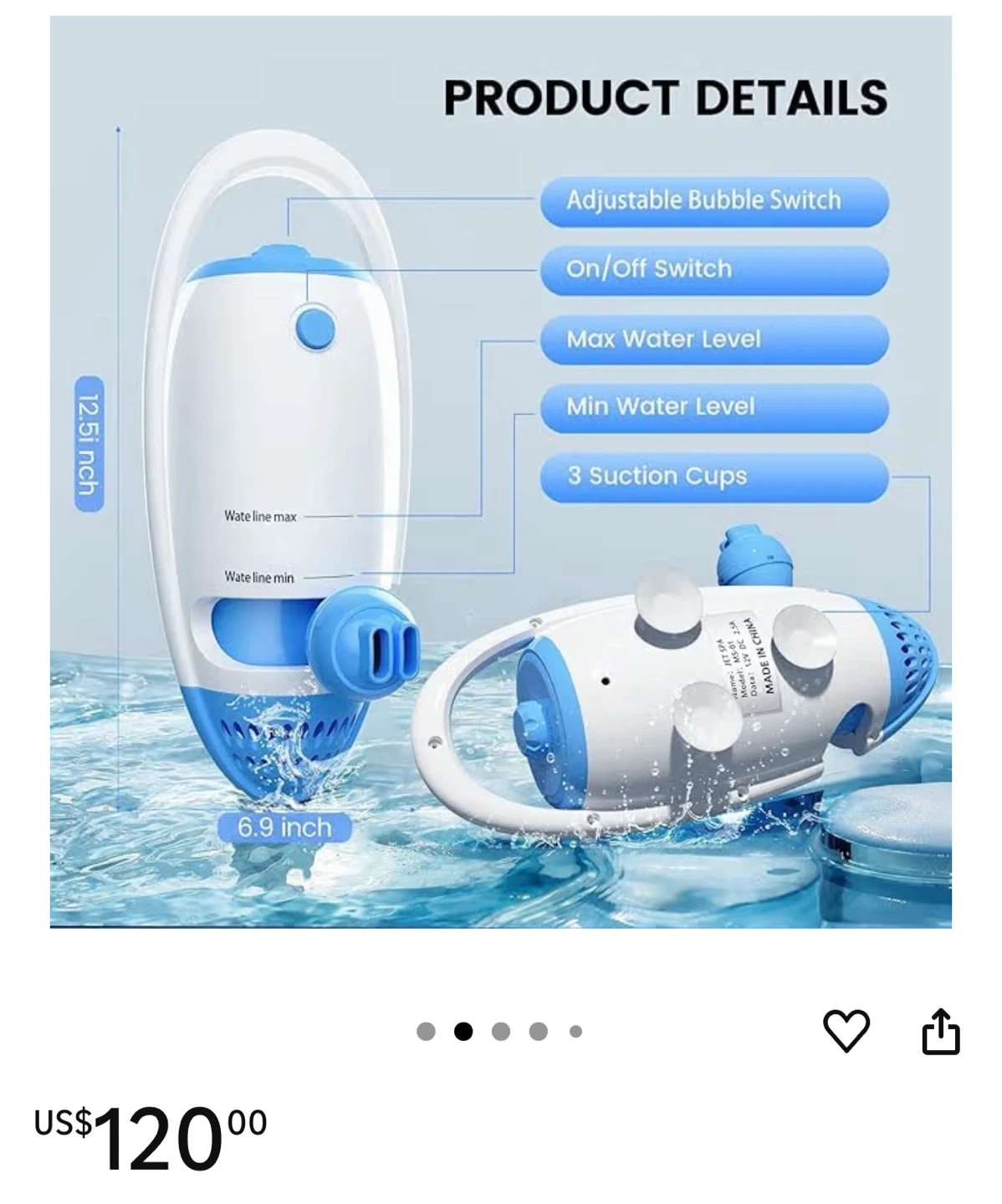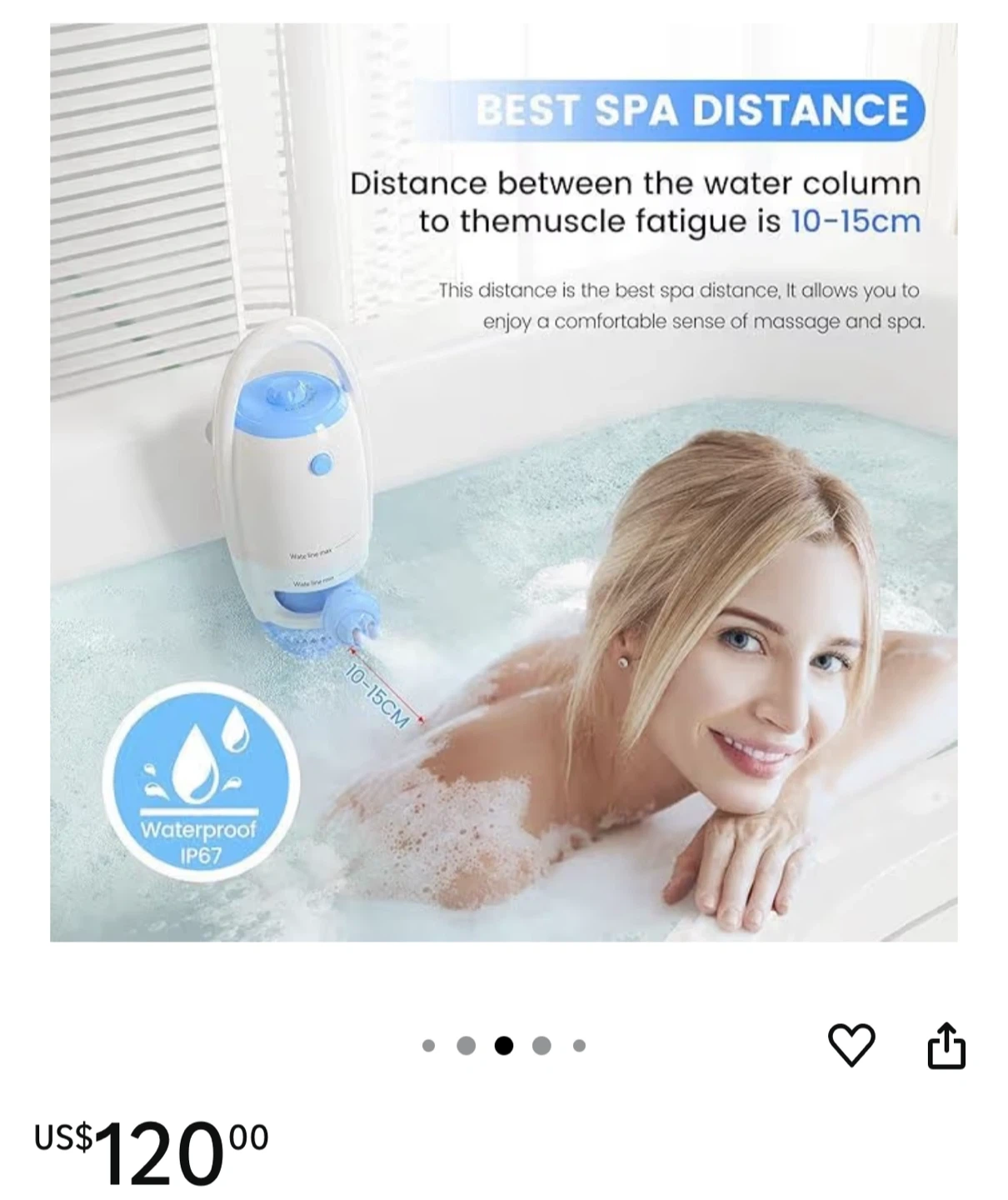 98This portable bathtub bubble massager features an adjustable bubble switch, on/off switch, max and min water levels, and 3 suction cups! The best spa distance is between 10-15cm from the water column to muscle fatigue. It's also waterproof IP67