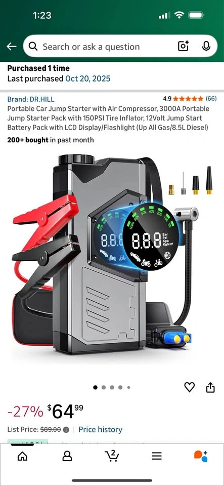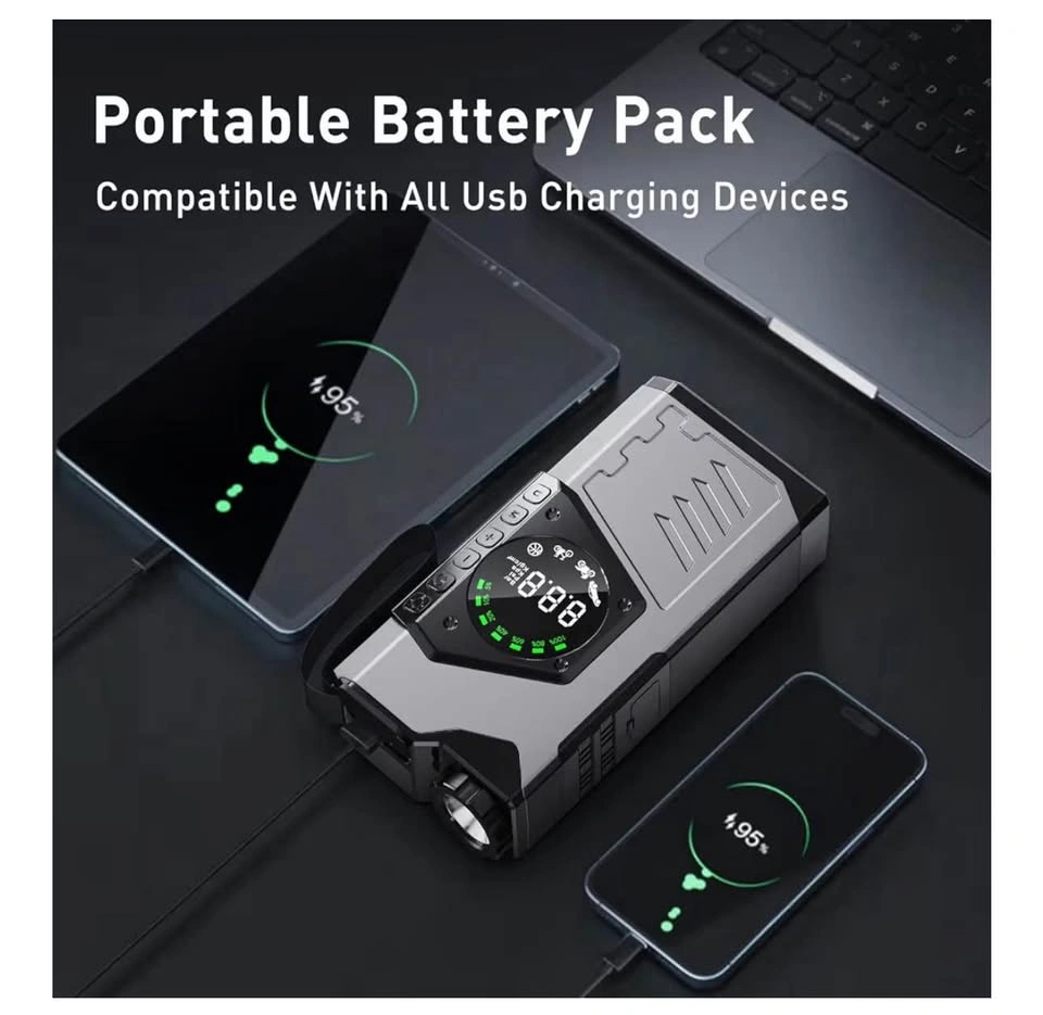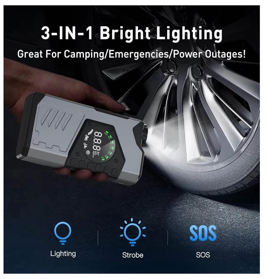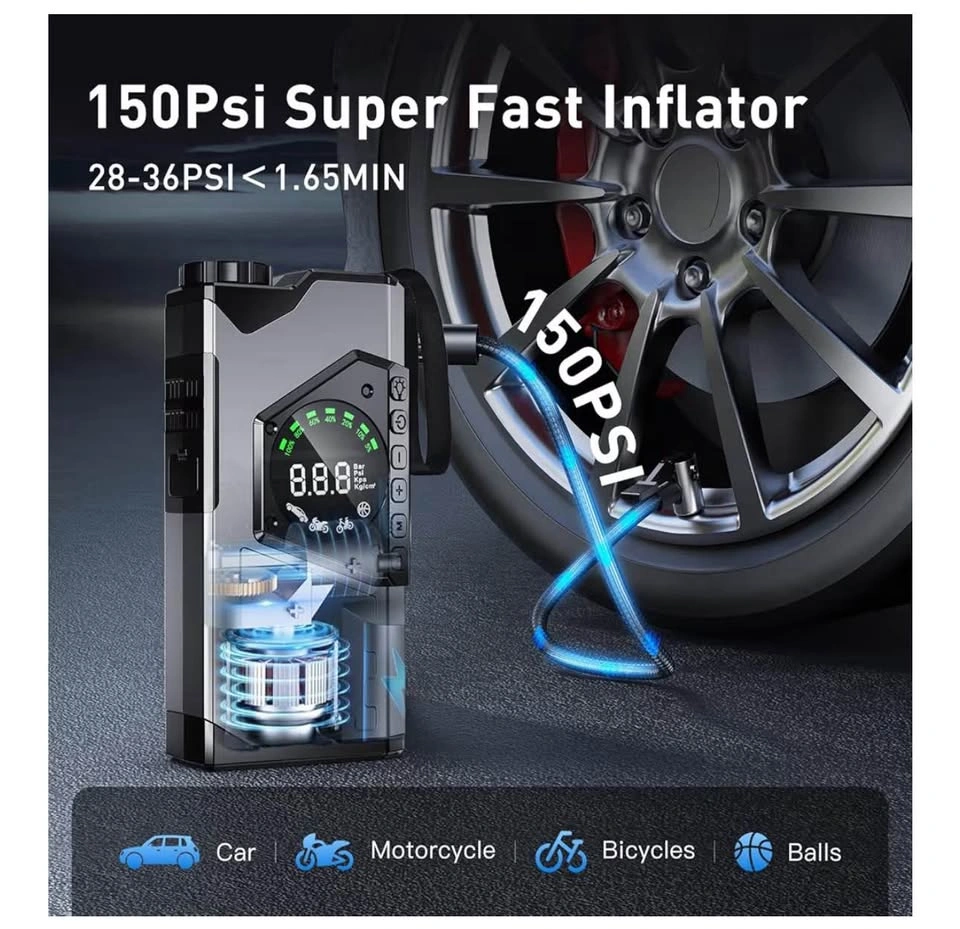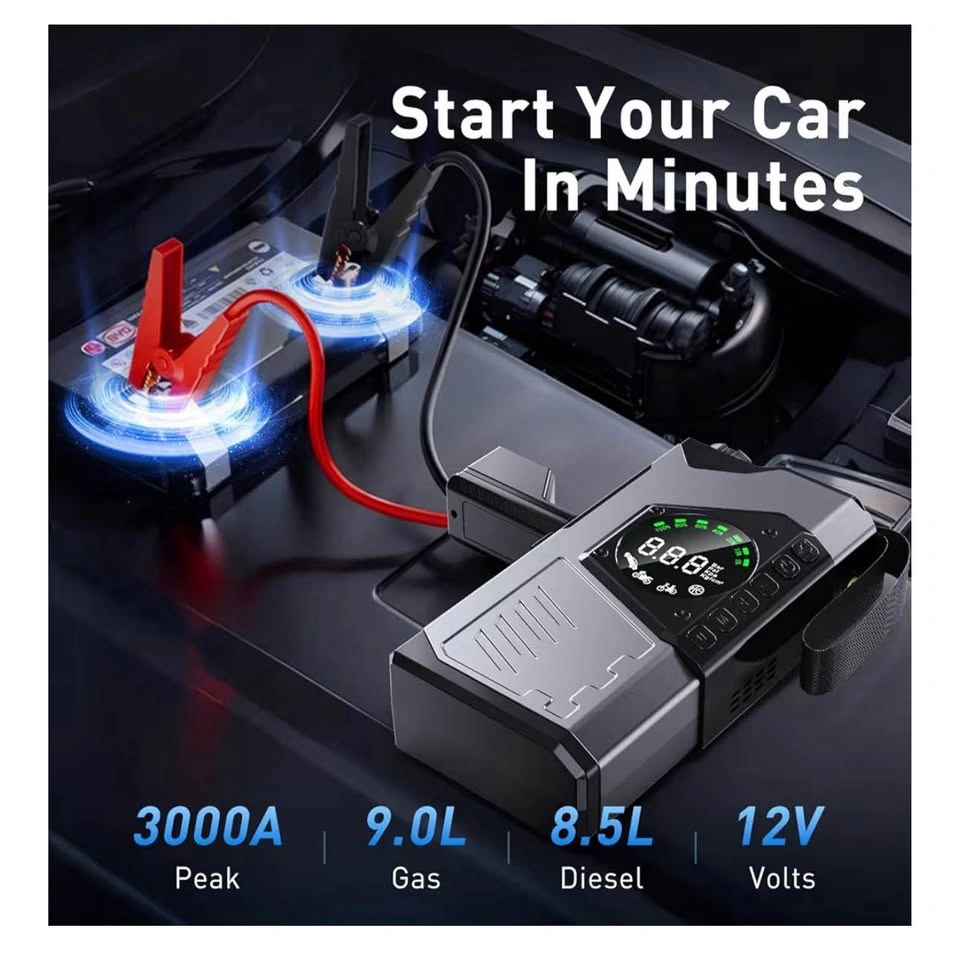 116Brand new! Portable Car Jump Starter with Air Compressor, 3000A Portable Jump Starter Pack with 150PSI Tire Inflator, 12Volt Jump Start Battery Pack with LCD Display/Flashlight (Up All Gas/8.5L Diesel)