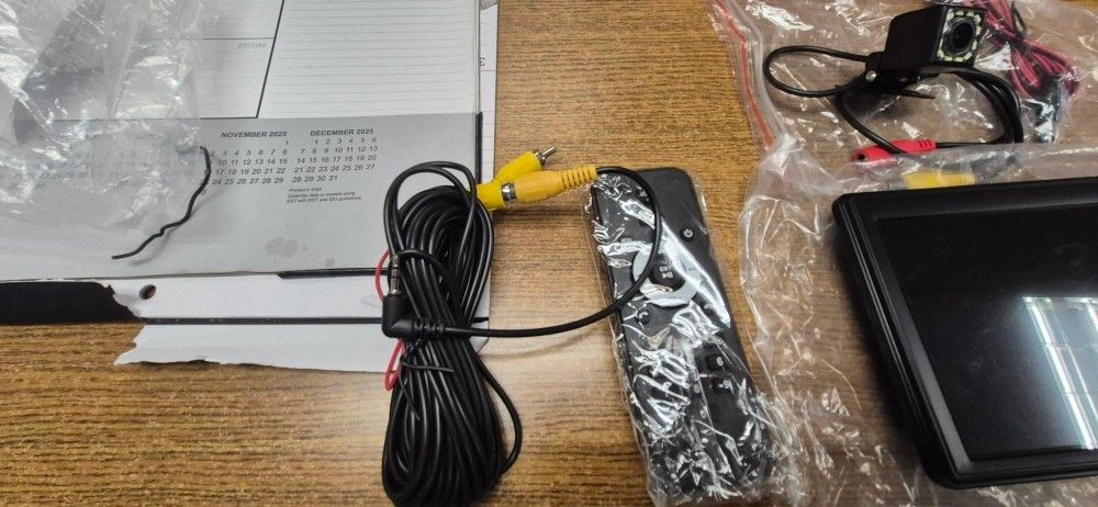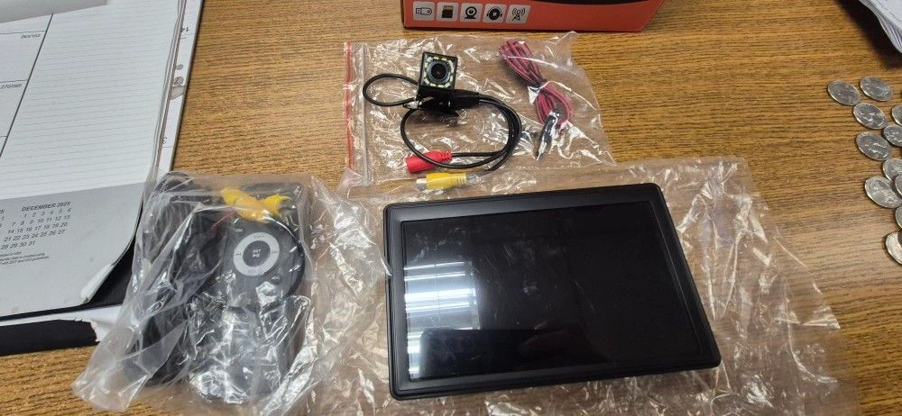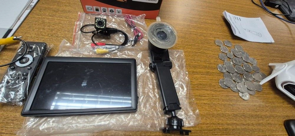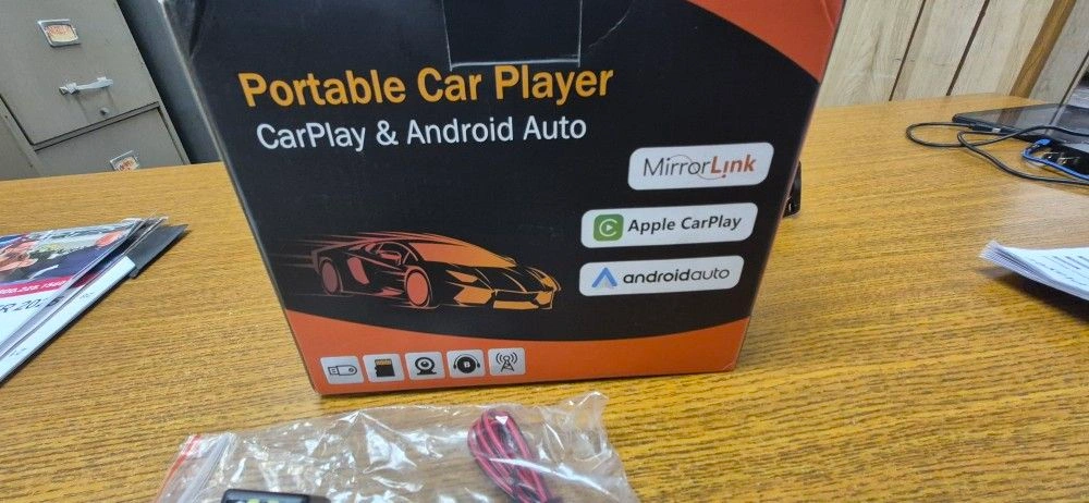 Open box never used portable car player with back up camera, only pick ups. Brand: Not sure