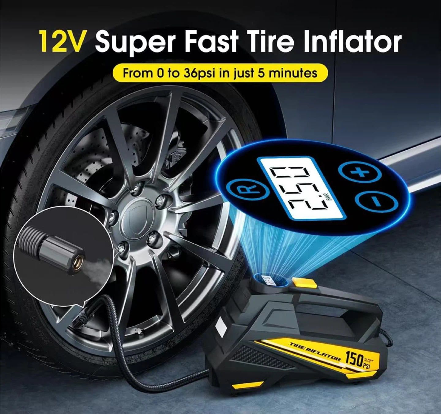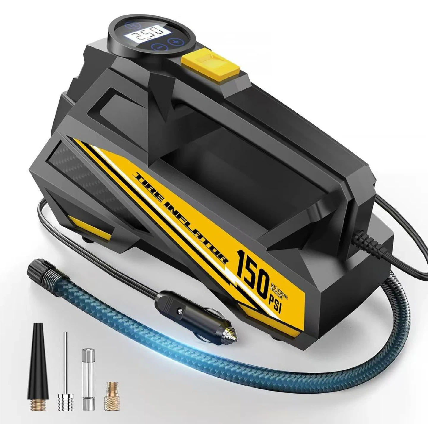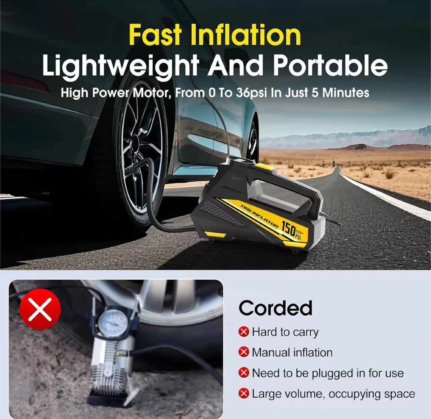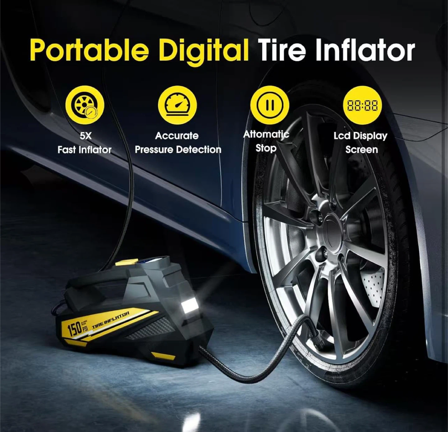 60Tire Inflator Portable Air Compressor - DC 12V Air Pump for Car Tires with 150PSI LCD Digital Gauge & Emergency LED Light,Auto Tire Pump for Cars,Motorcycles,Bikes,Balls (Large)