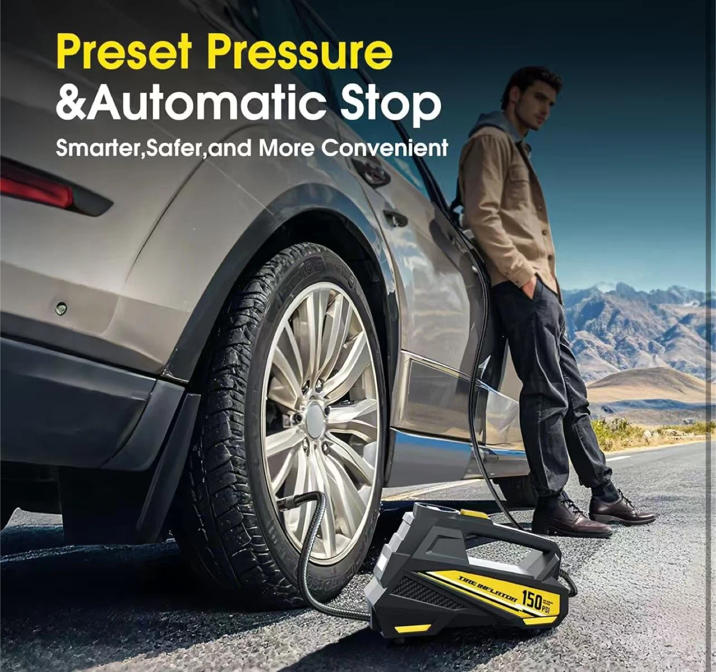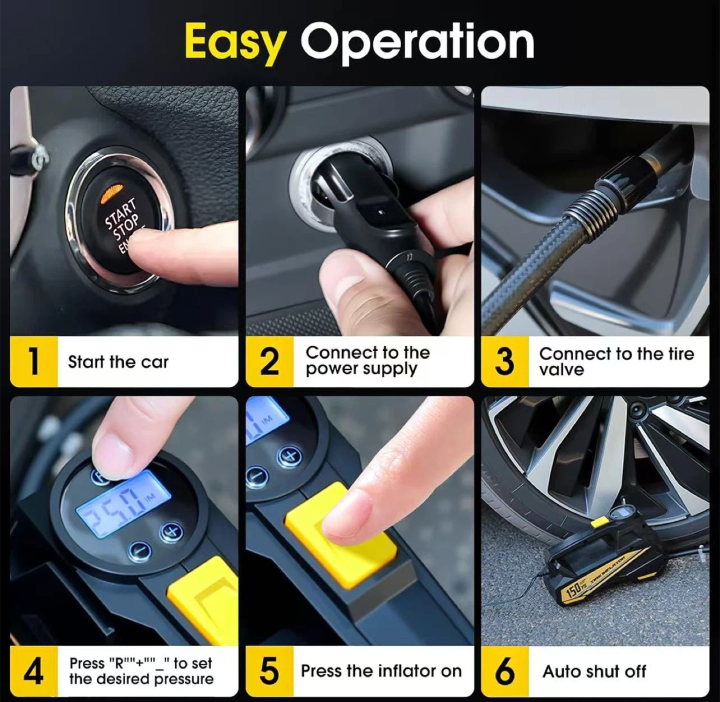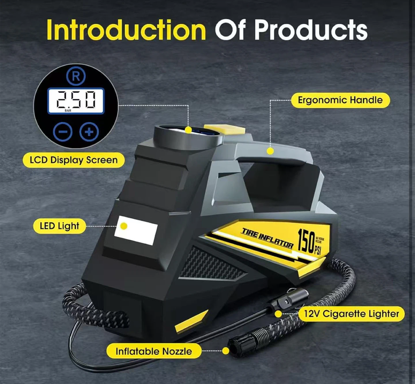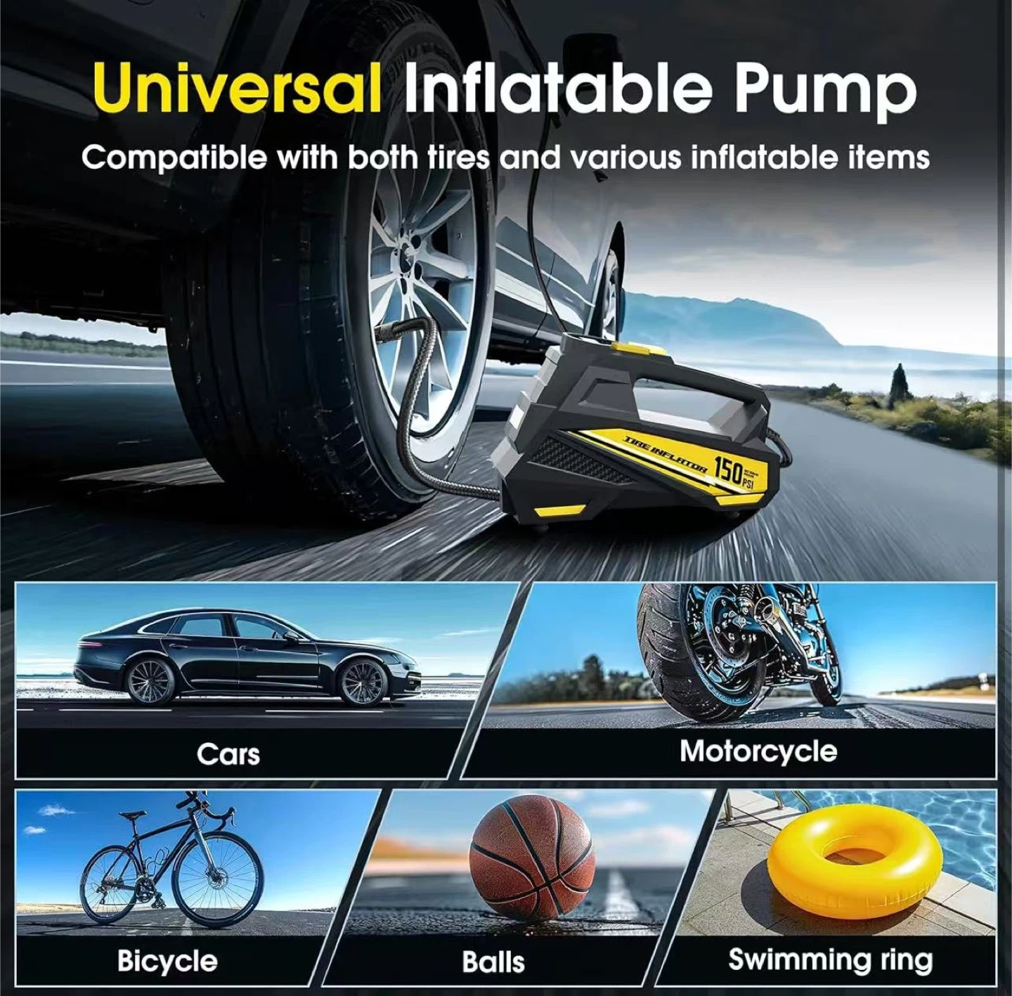 60Tire Inflator Portable Air Compressor - DC 12V Air Pump for Car Tires with 150PSI LCD Digital Gauge & Emergency LED Light,Auto Tire Pump for Cars,Motorcycles,Bikes,Balls (Large)