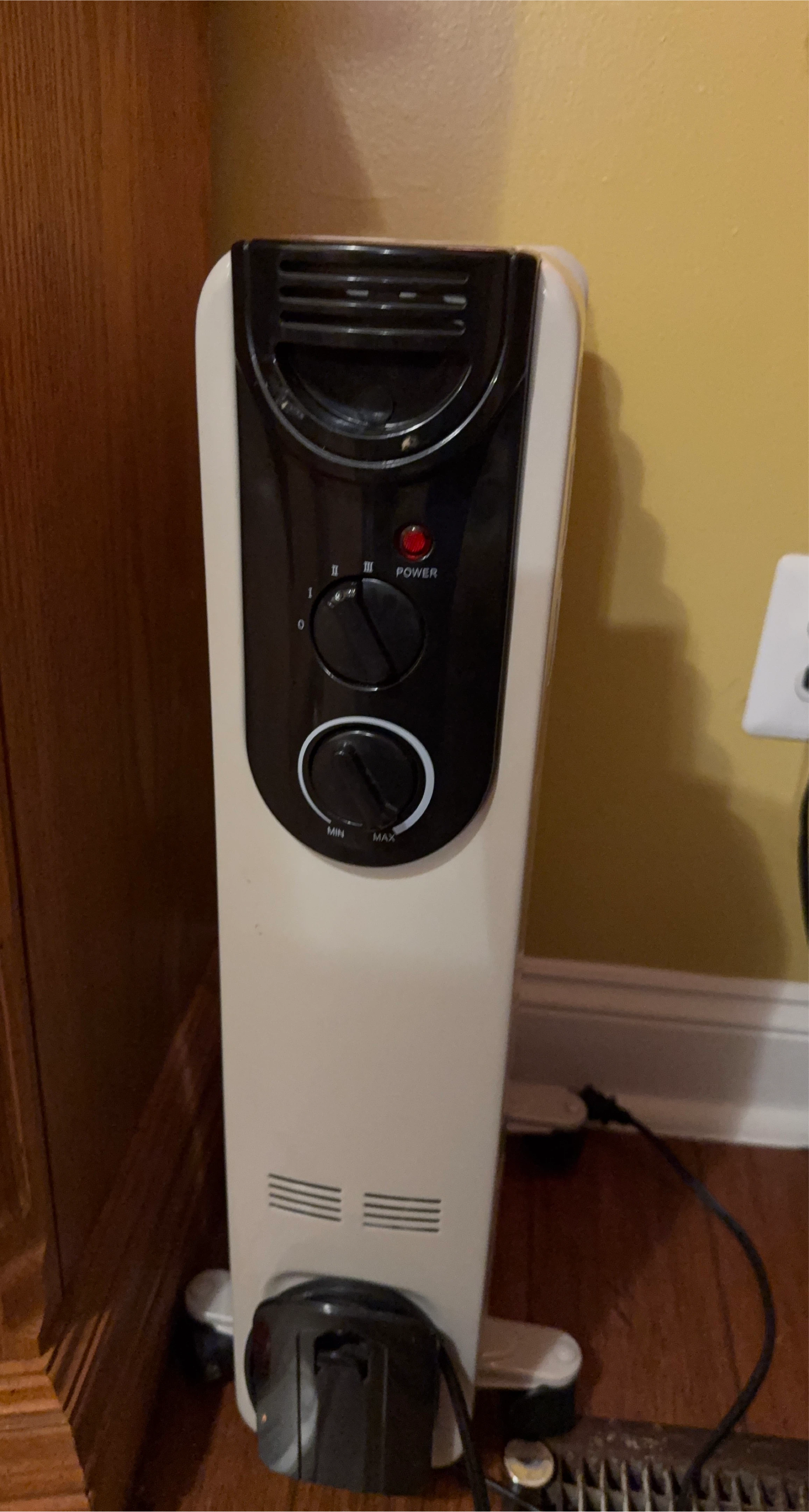 Selling a portable electric space heater. It has adjustable settings from min to max, and three power levels. It's in good condition and ready to keep you warm!