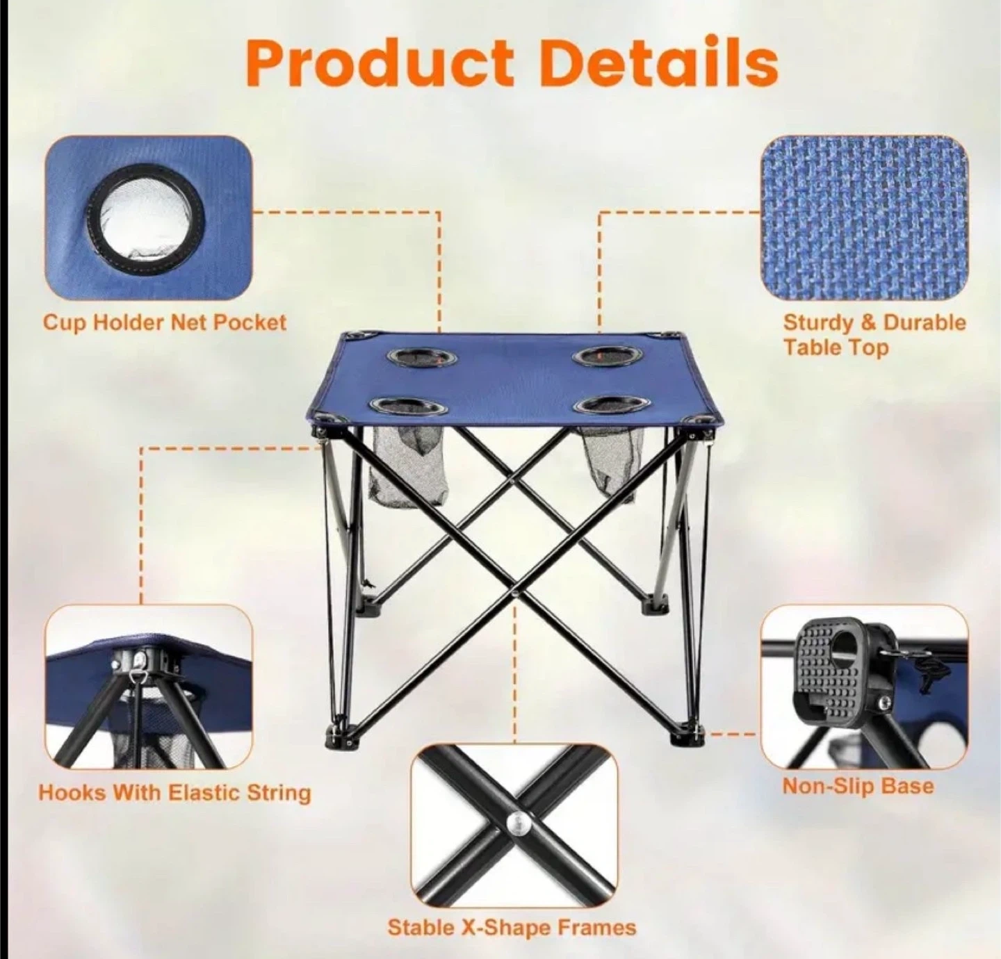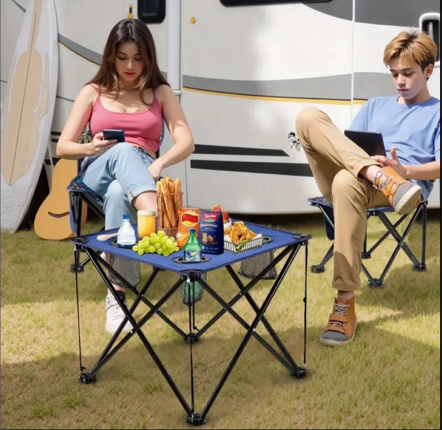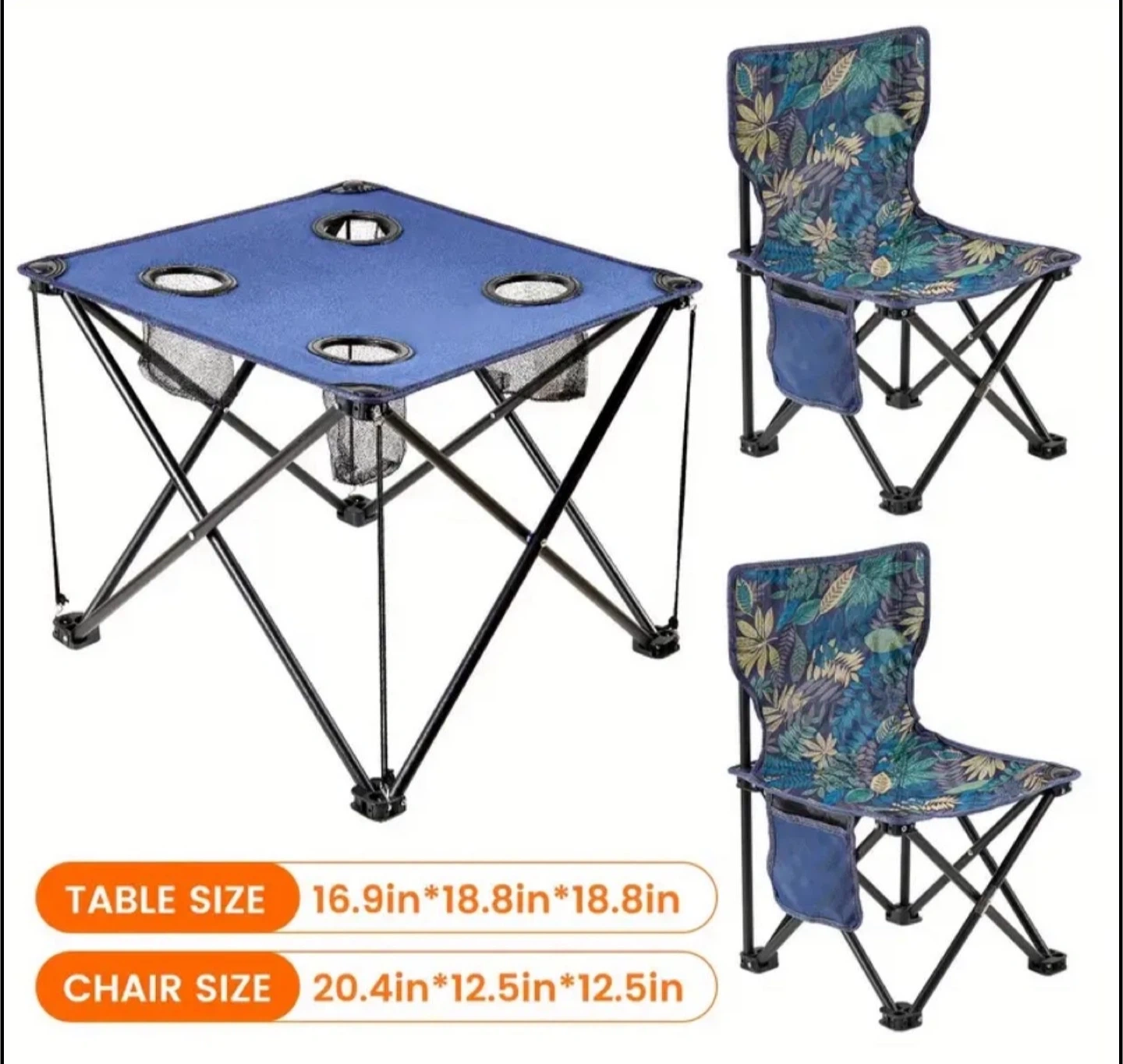 172Portable Folding Camping Table with Cup Holders, 16.9 x 18.8 inches, Navy Blue (Folding Table + 2 Chairs)