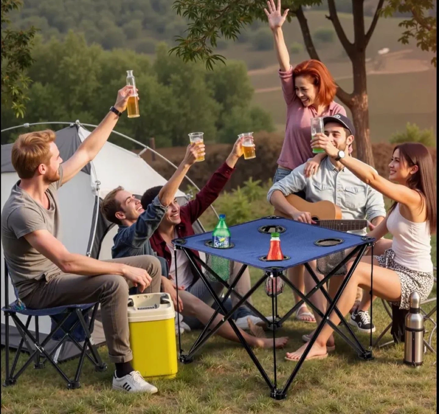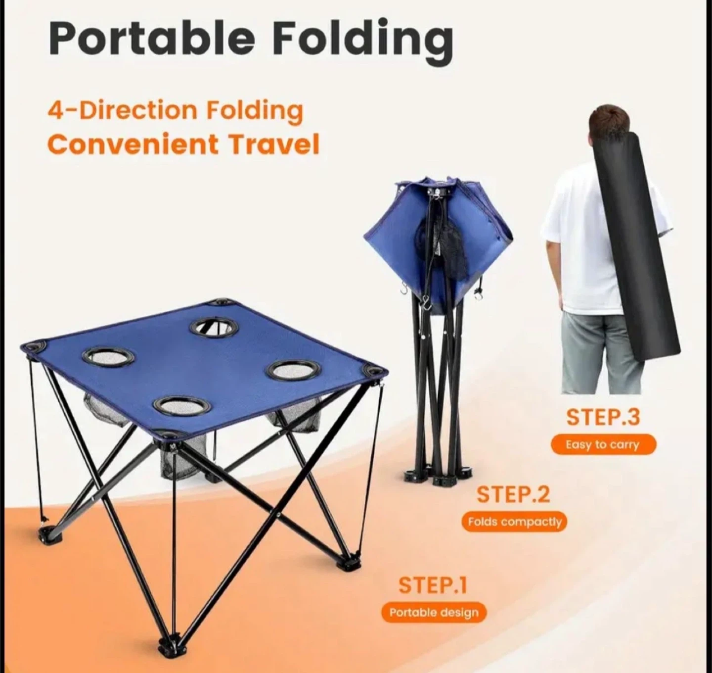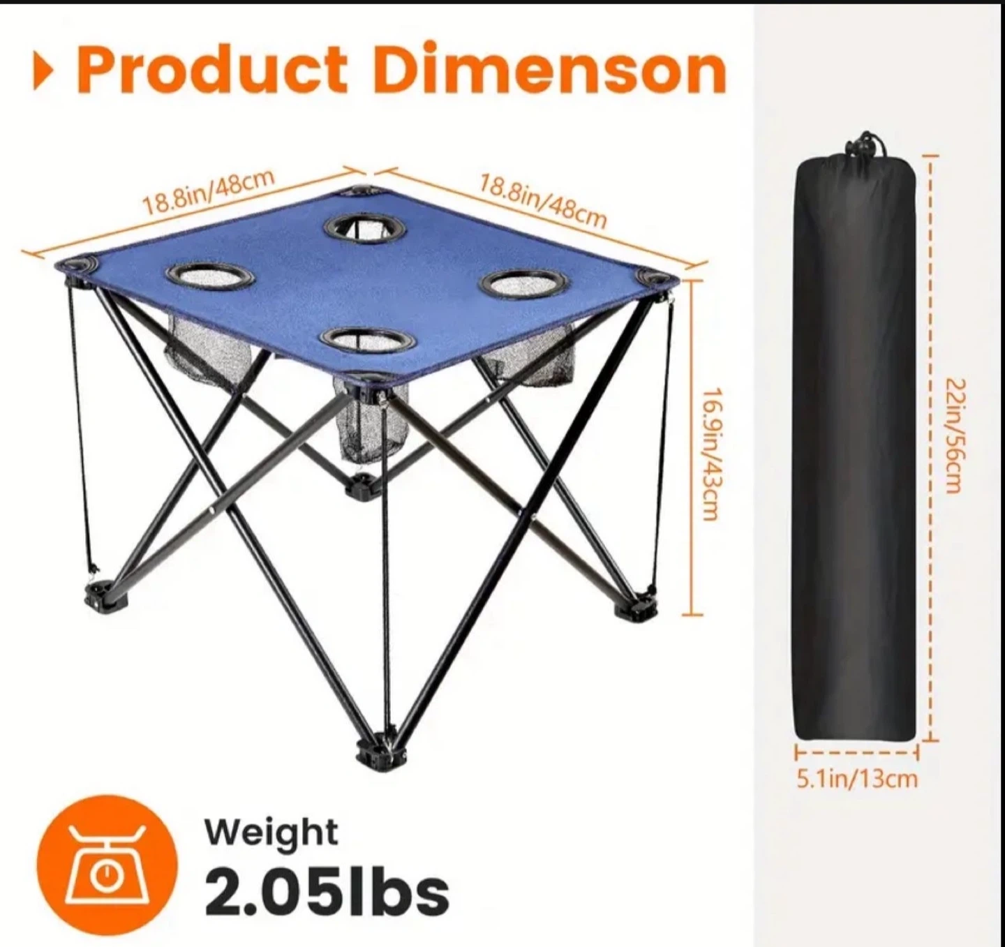 172Portable Folding Camping Table with Cup Holders, 16.9 x 18.8 inches, Navy Blue (Folding Table + 2 Chairs)