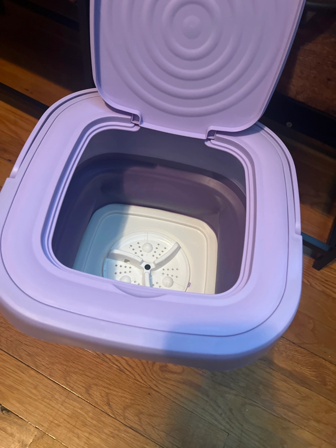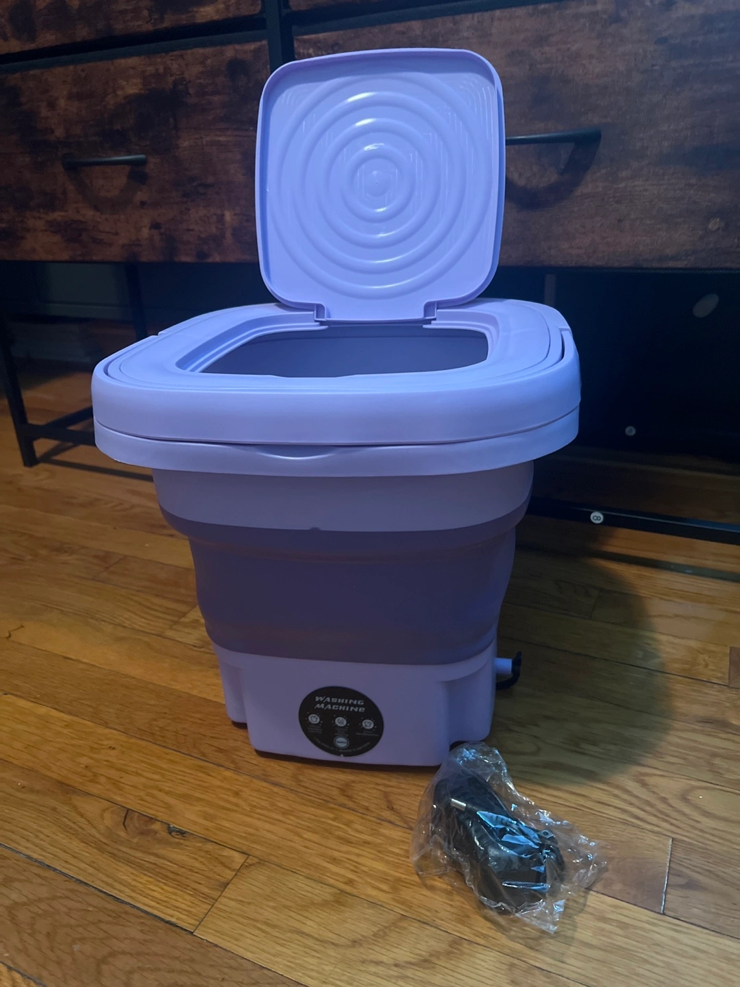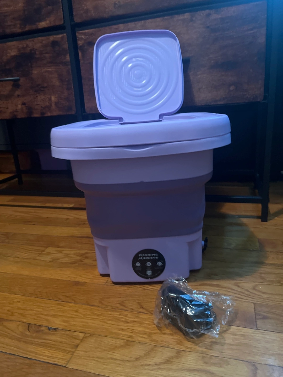 I'm selling a portable mini washing machine in purple! It's in great condition and comes with the charger and instructions. Perfect for small loads and travel