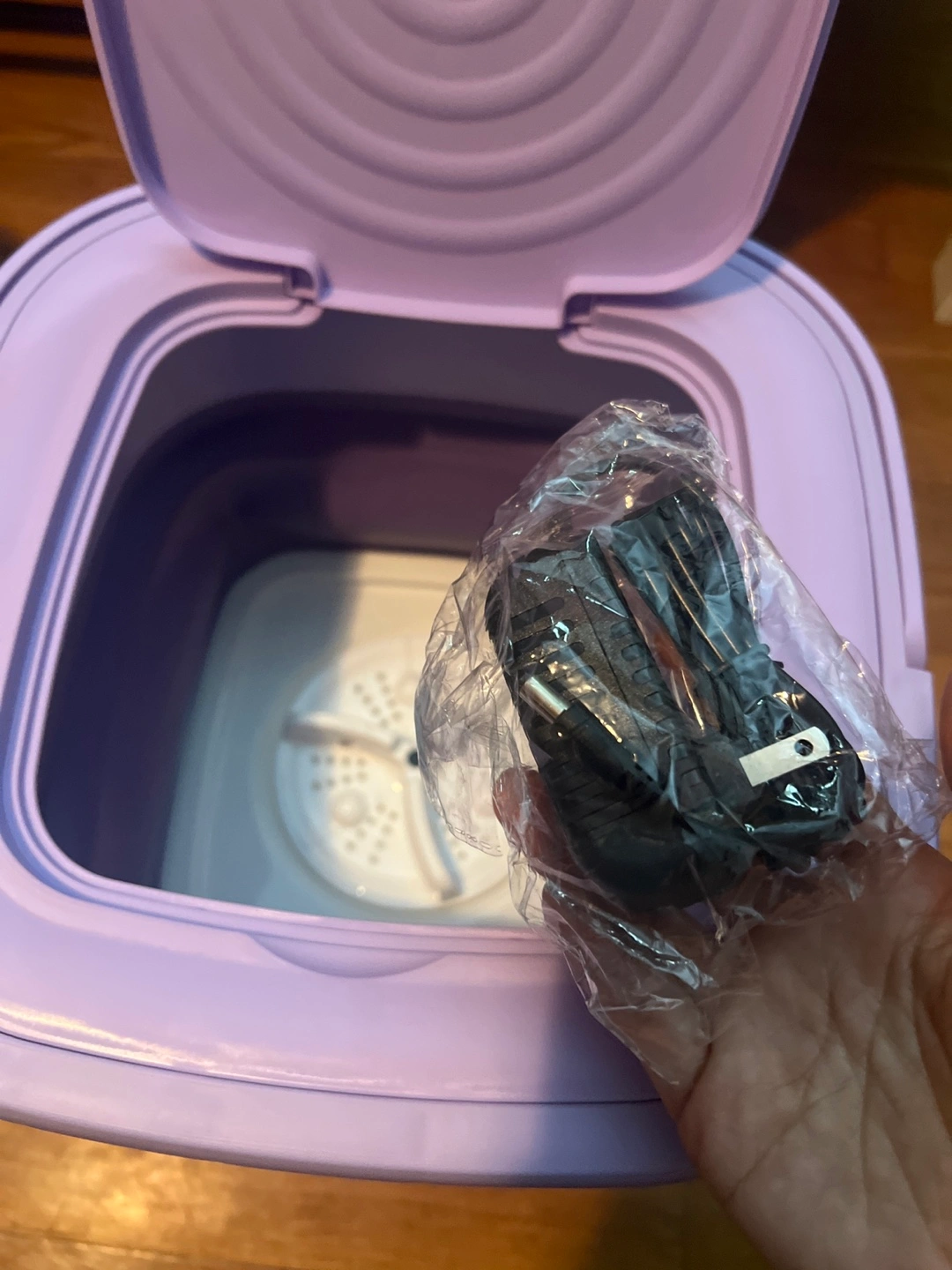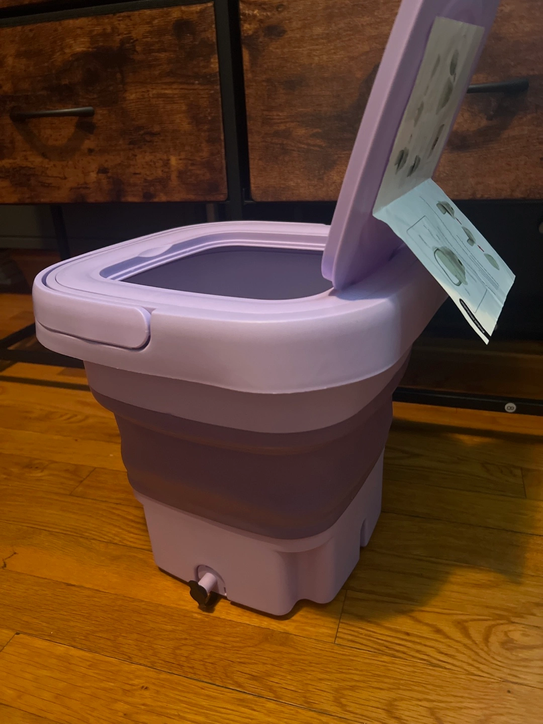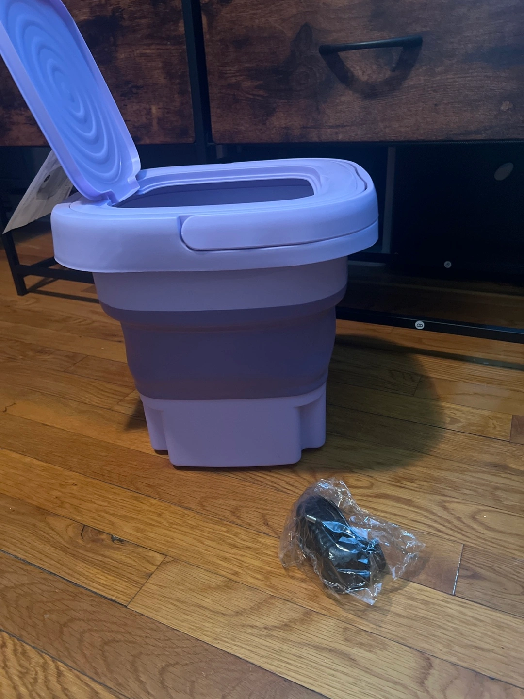 I'm selling a portable mini washing machine in purple! It's in great condition and comes with the charger and instructions. Perfect for small loads and travel