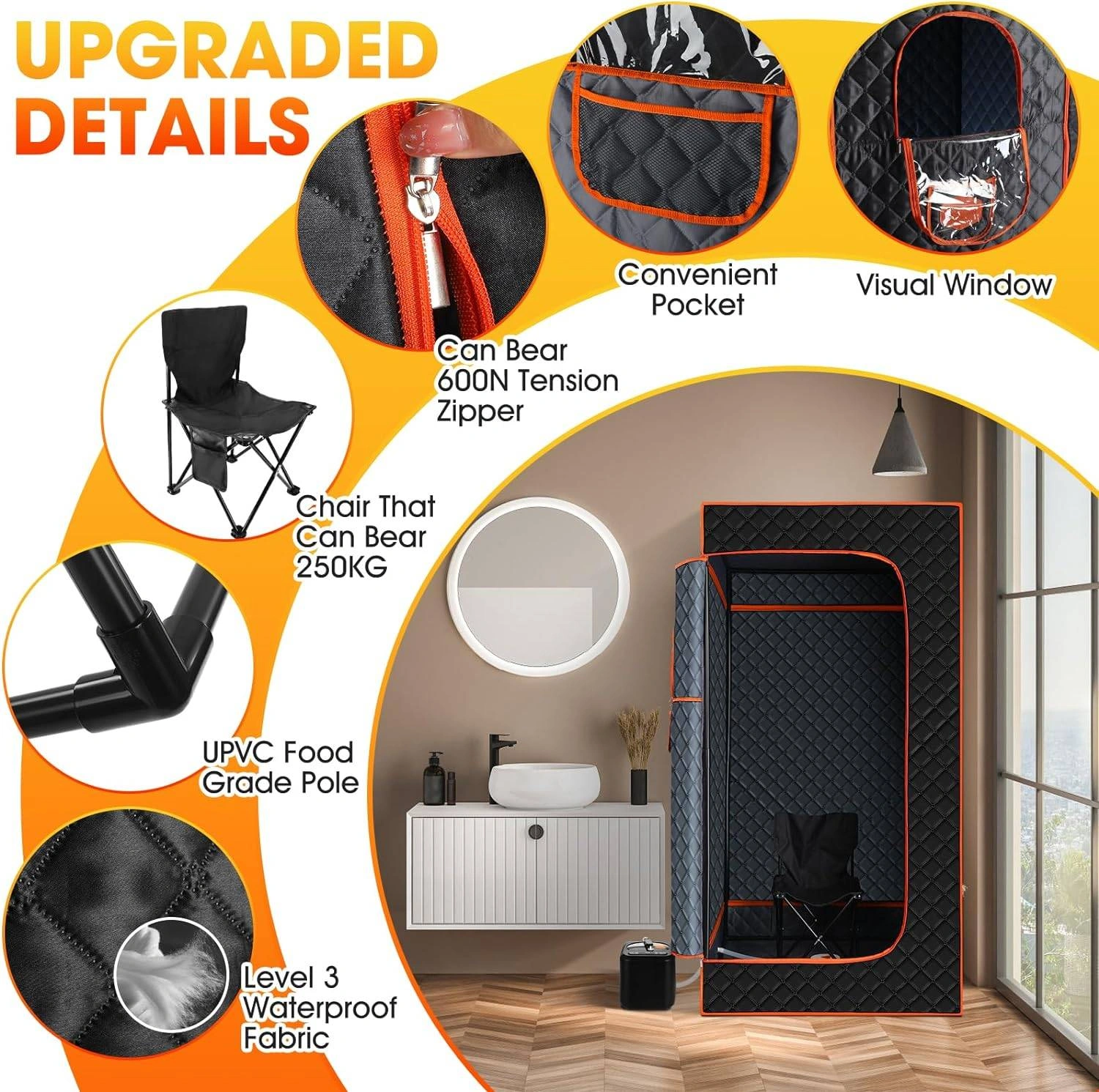 130Elevate your home wellness with this portable full-body sauna tent, featuring a 3L 110V steamer for deep steam therapy. Ideal for gym, Pilates, garage, or hot tub setups, this 2024 personal sauna (36x36x71 inches) delivers spa-like relaxation and detoxification right at home—compact, easy to assemble, and perfect for daily rejuvenation. #PortableSauna #HomeSauna #FullBodySauna #SteamSauna #PersonalSauna #SaunaTent #HomeSpa #Wellness