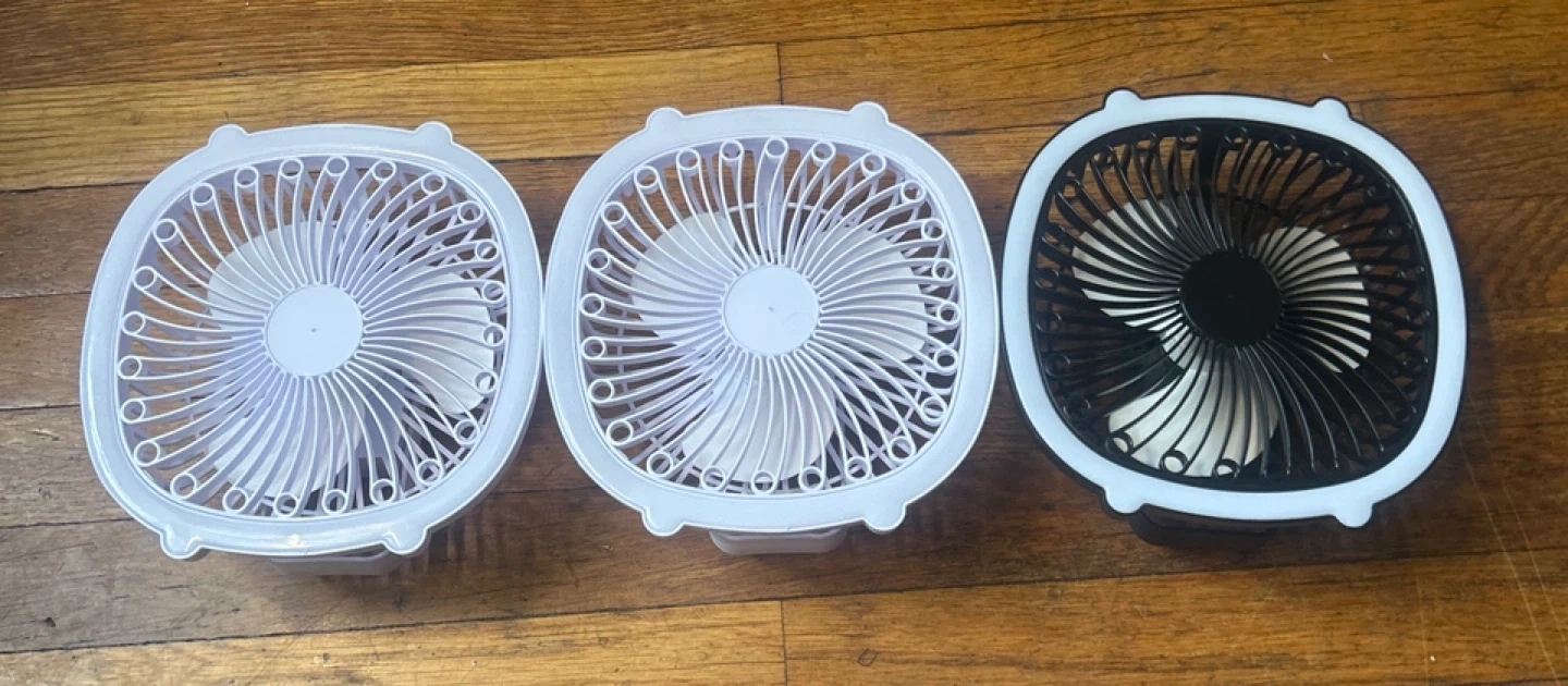 Selling these mini desk fans! There are two white ones and one black one. They're perfect for keeping cool on a hot day and are super portable they also light up .