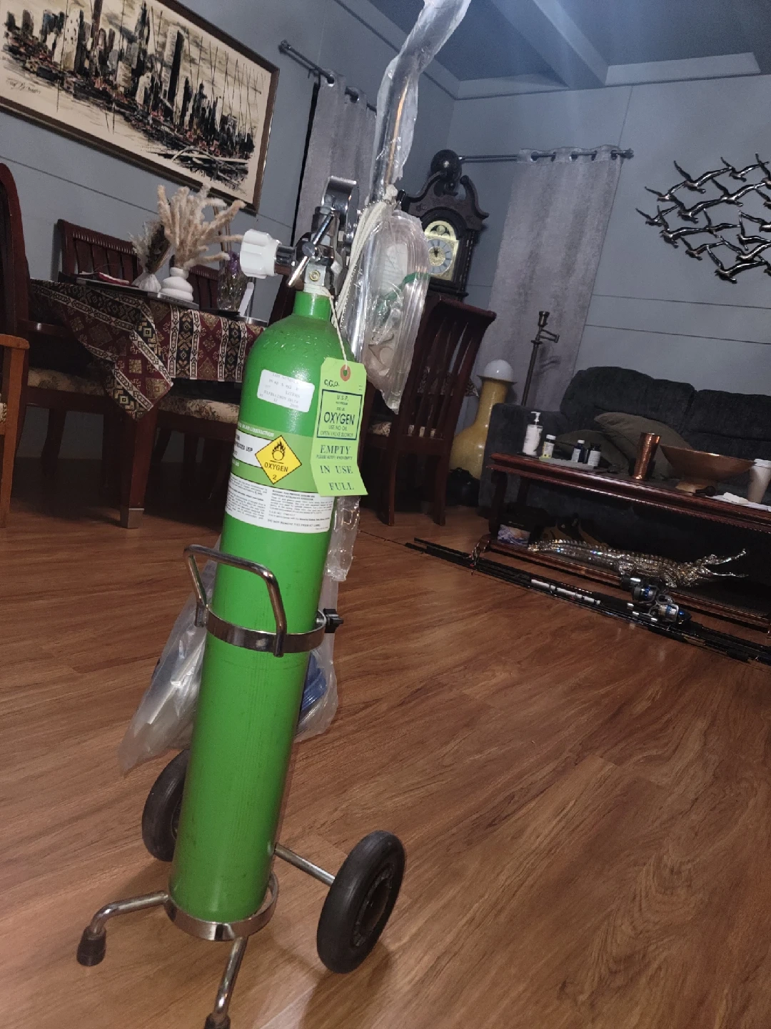 67Selling a portable oxygen tank. It appears to be in good condition and comes with a wheeled stand for easy mobility. Perfect for anyone needing supplemental oxygen at home or on the go