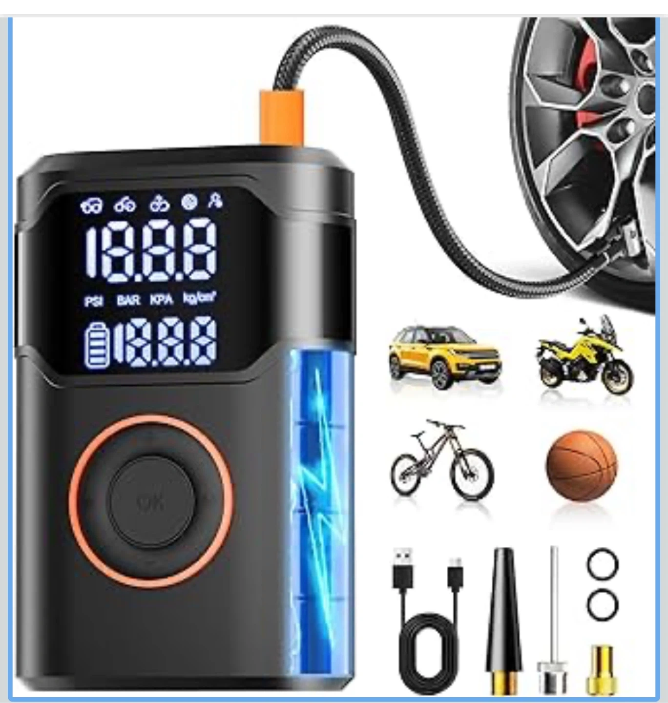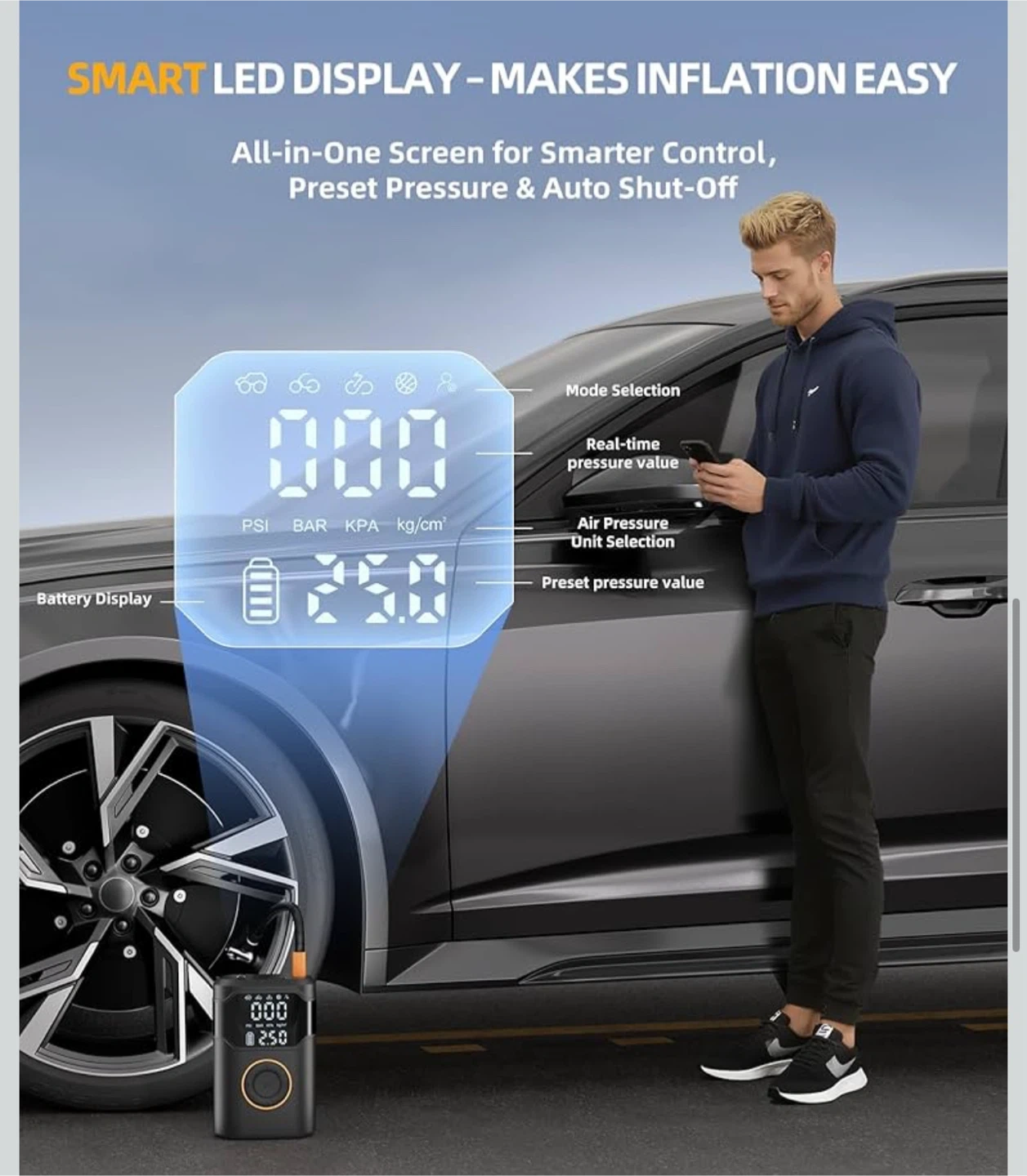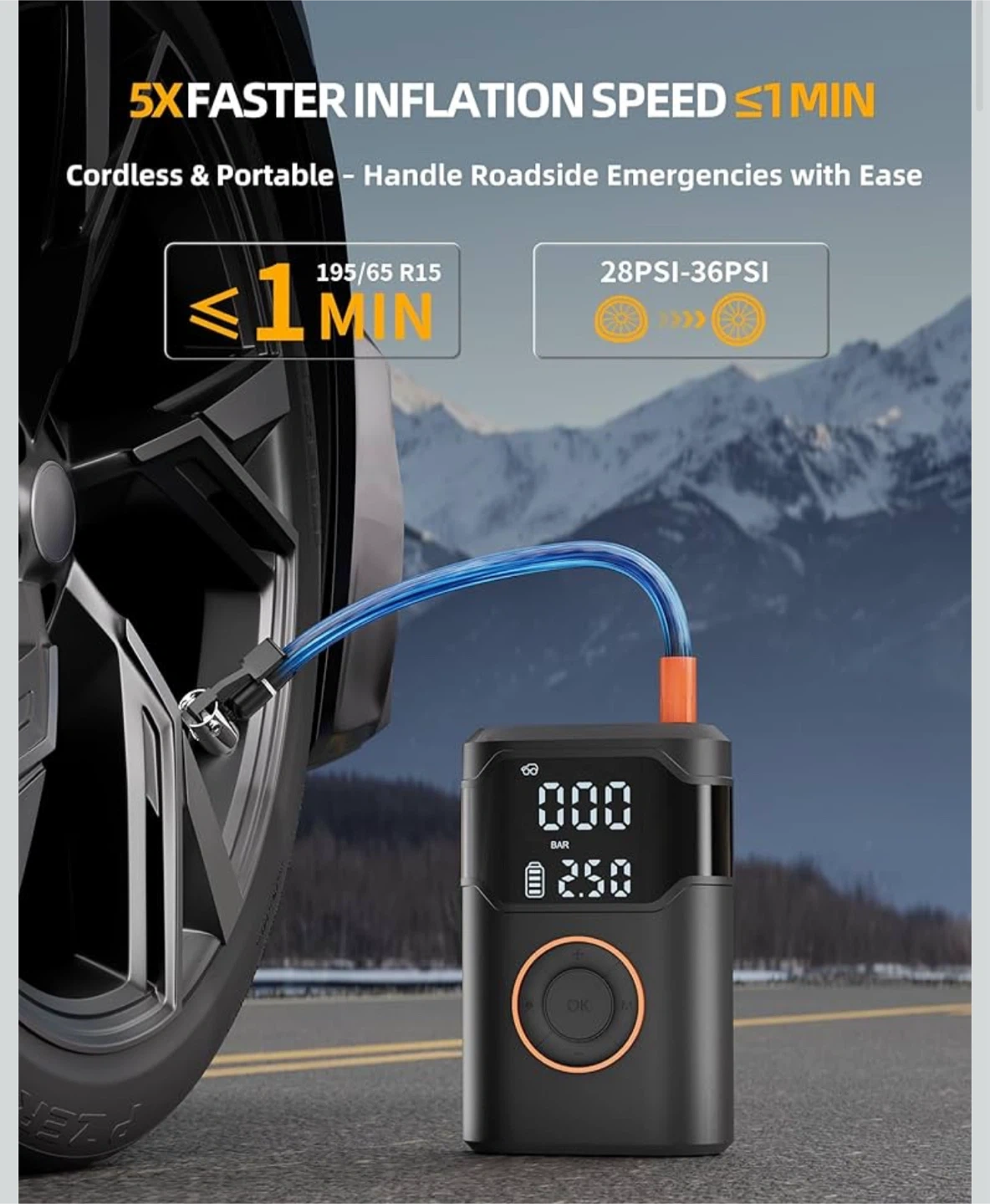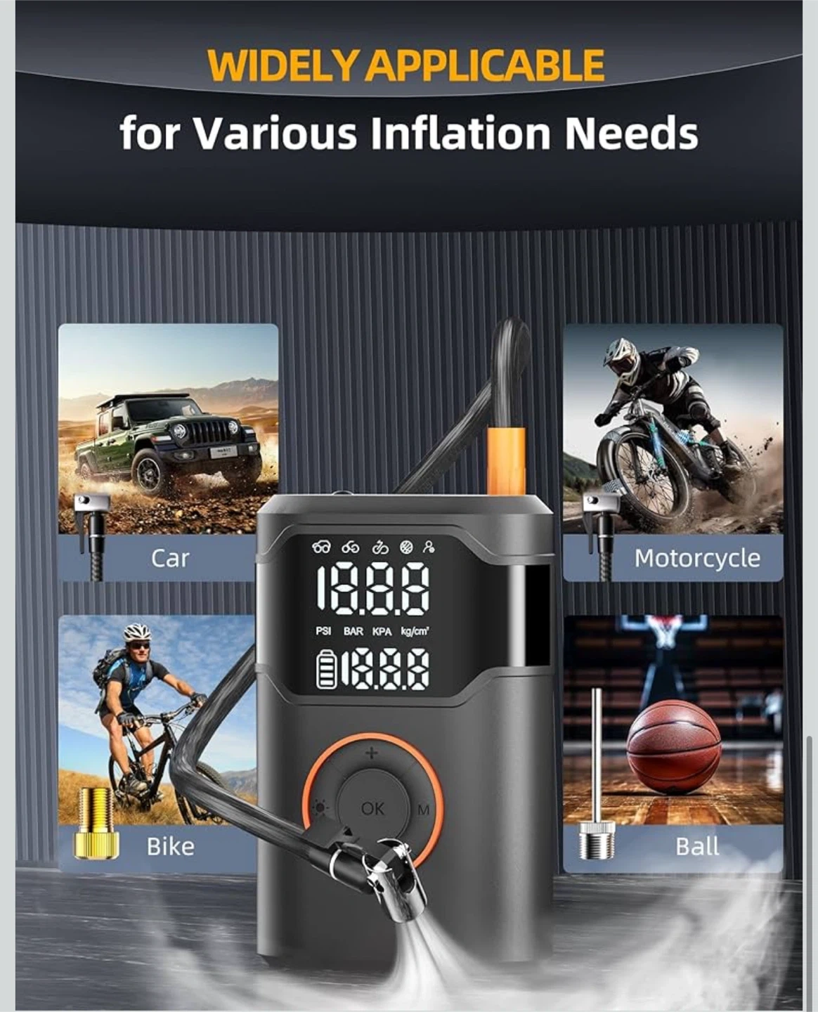 172Tire Inflator Portable Air Compressor-150PSI Cordless Tire Air Pump, 5X Faster with Digital Gauge, Auto-Off & LED Light, Air Pump for Car Tires, Motorcycle, Bike, Balls & More