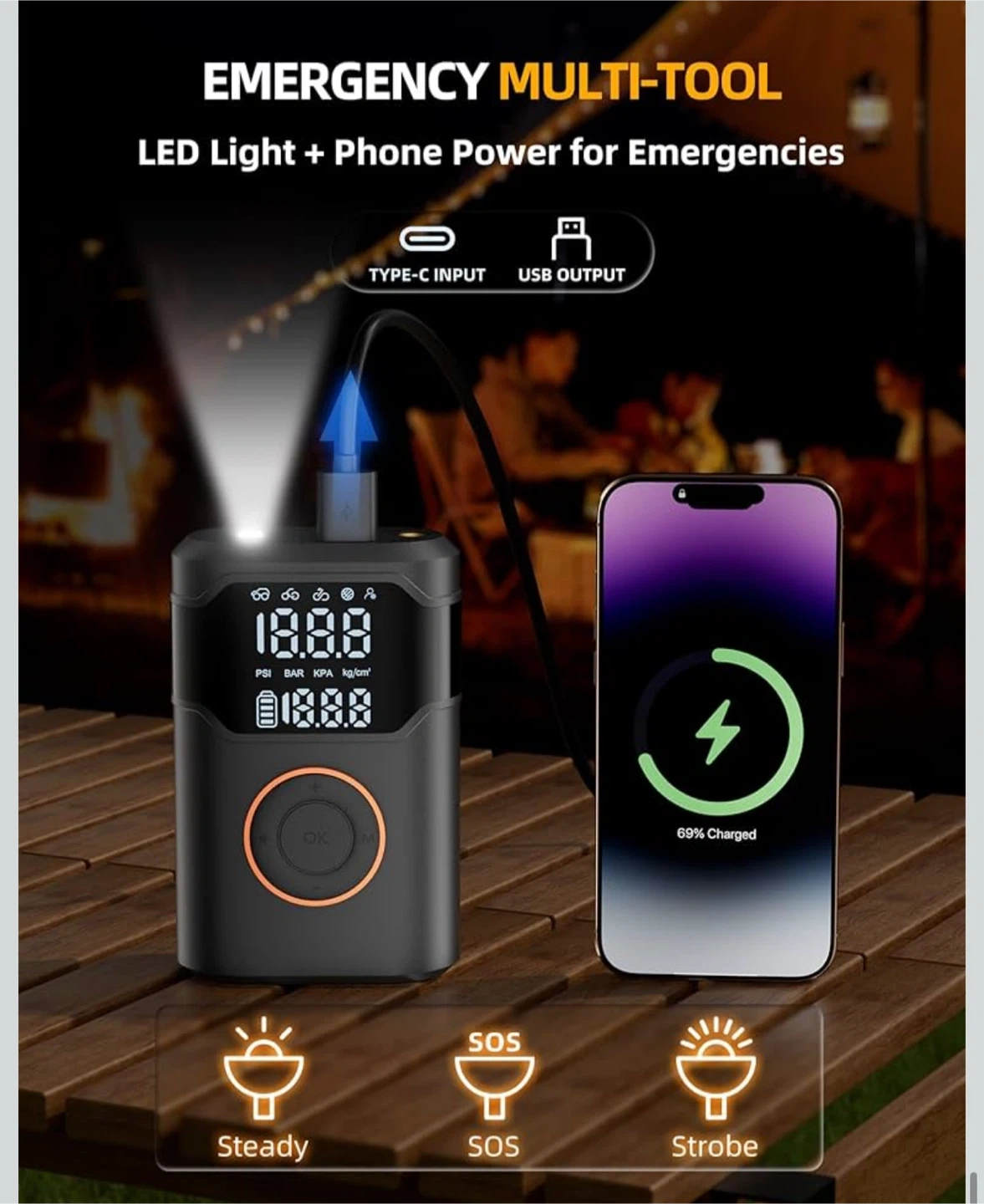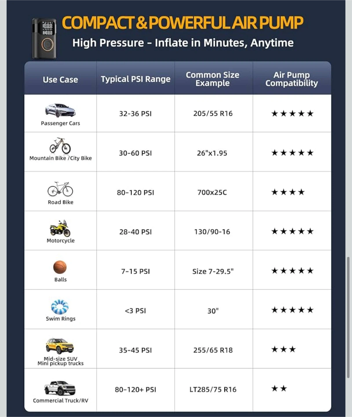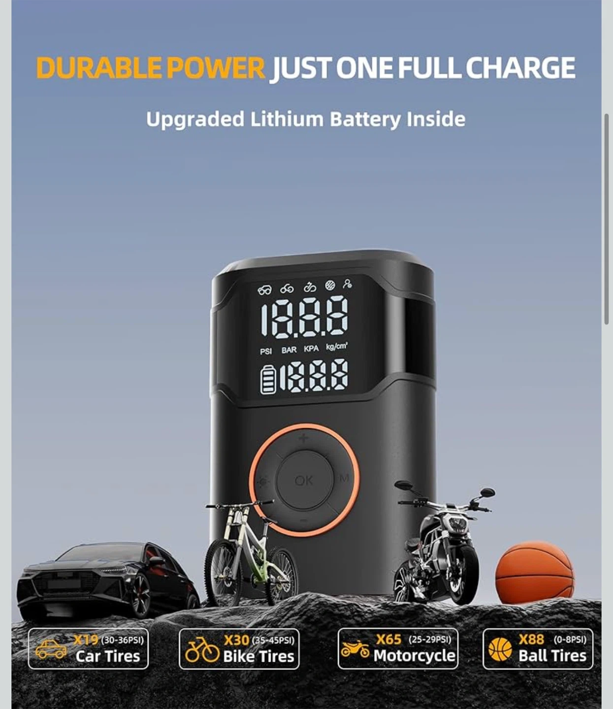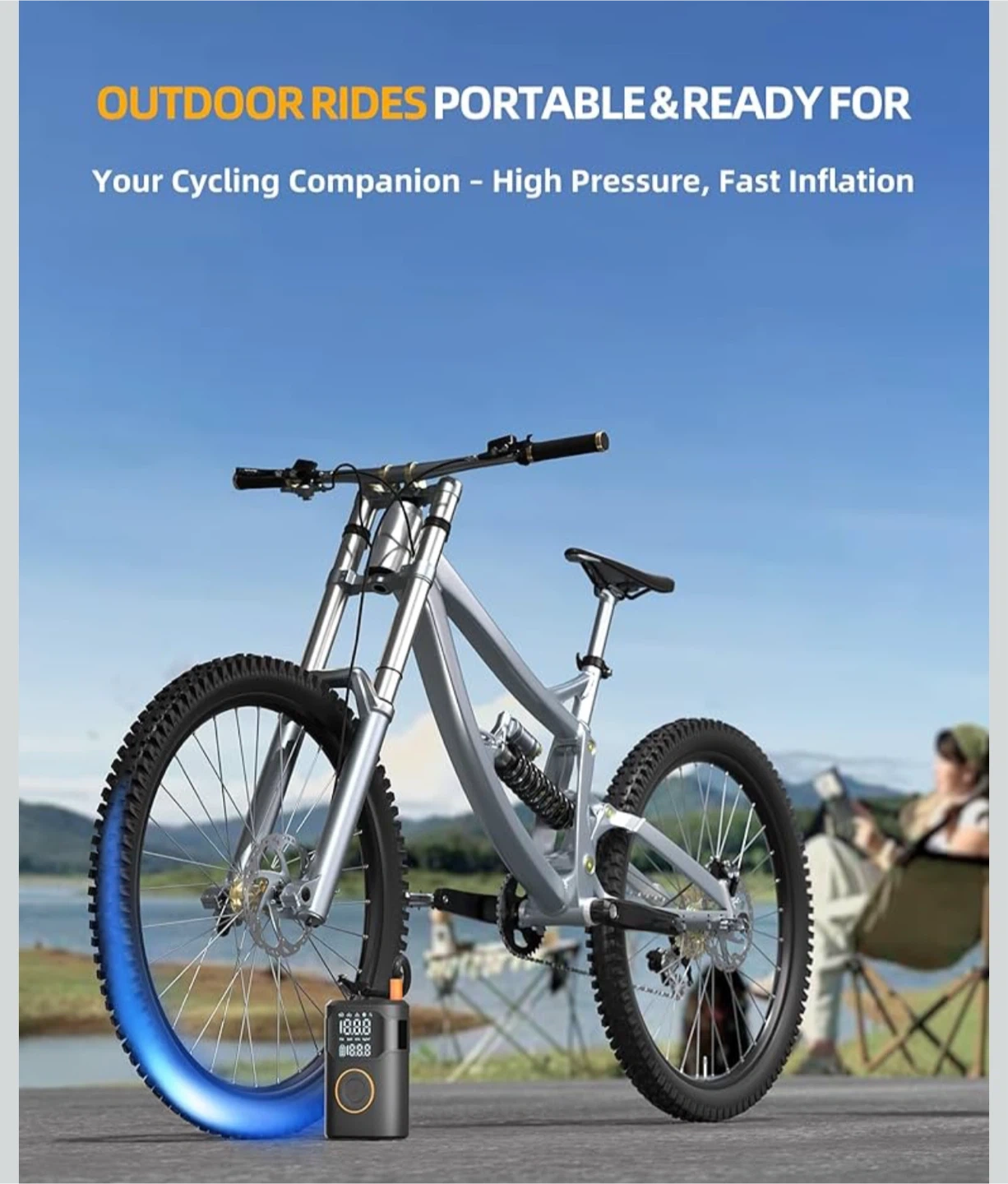 172Tire Inflator Portable Air Compressor-150PSI Cordless Tire Air Pump, 5X Faster with Digital Gauge, Auto-Off & LED Light, Air Pump for Car Tires, Motorcycle, Bike, Balls & More