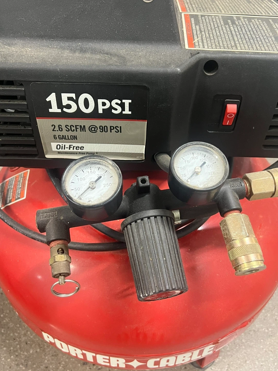 292Selling a Porter-Cable air compressor. It's a 6-gallon model with 150 PSI. It is oil-free. Model number is C2006.