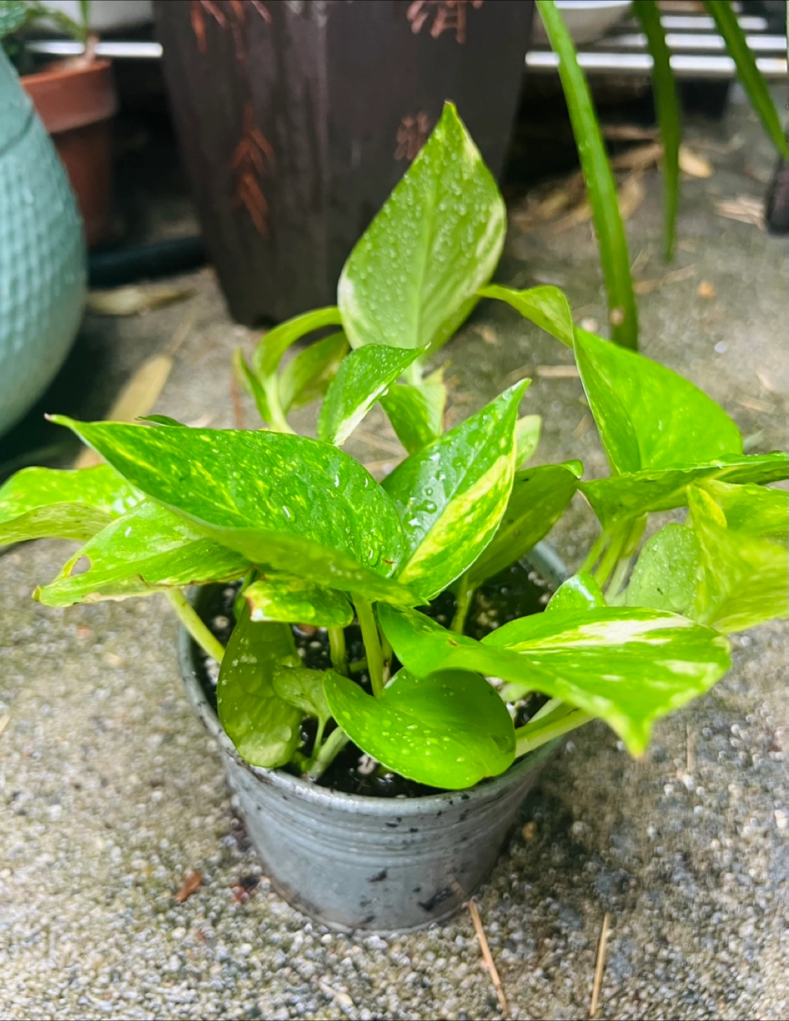 Selling a healthy pothos plant in a green pot! This plant is easy to care for and great for adding some greenery to your space